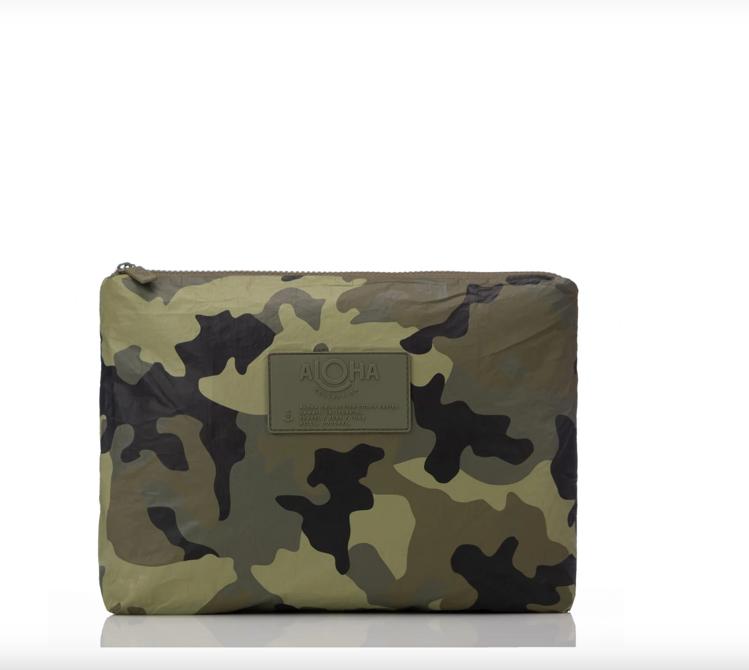Camo is the new neutral! The Aloha Camo Mid Pouch is the perfect bag to add to your travel collection. Stash your toiletries, organize small goods in your suitcase or your carry ons. Even take it waterside with you to keep your necessities dry or to stash your wet swimsuits.
