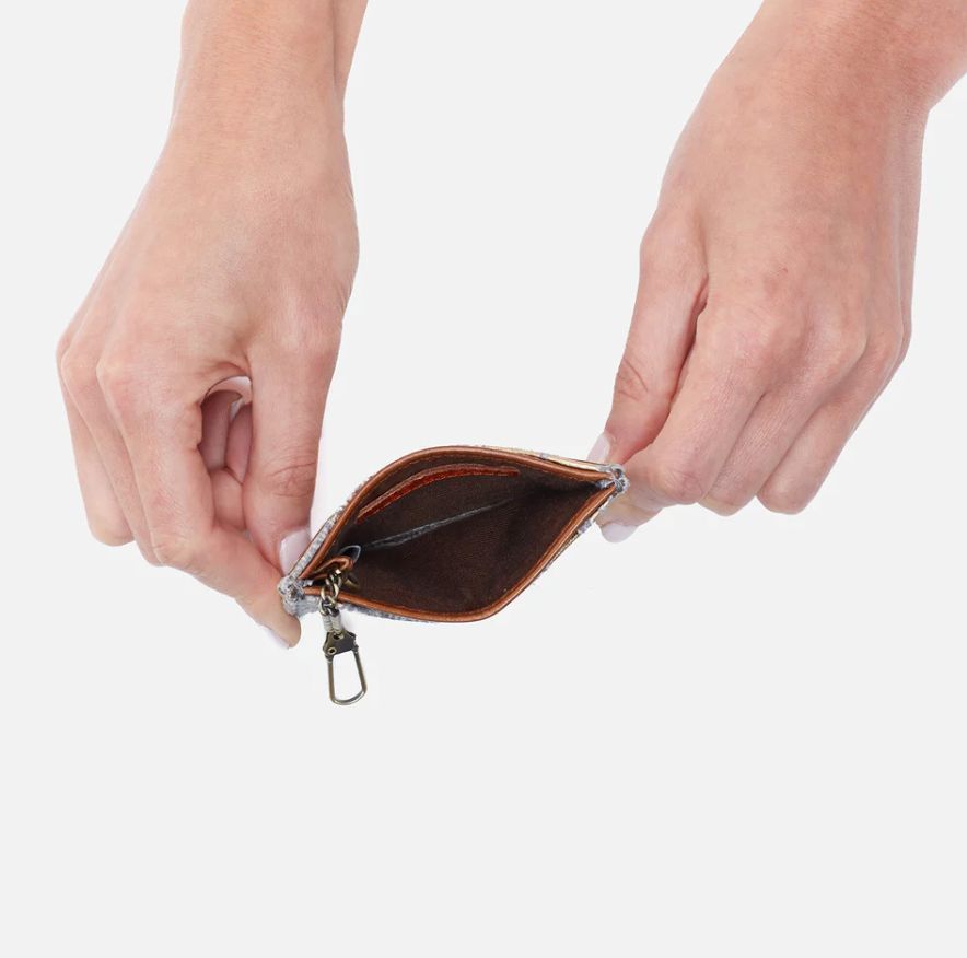 A leather card case. Max has a minimalist design, making it the perfect fit for smaller bags.
