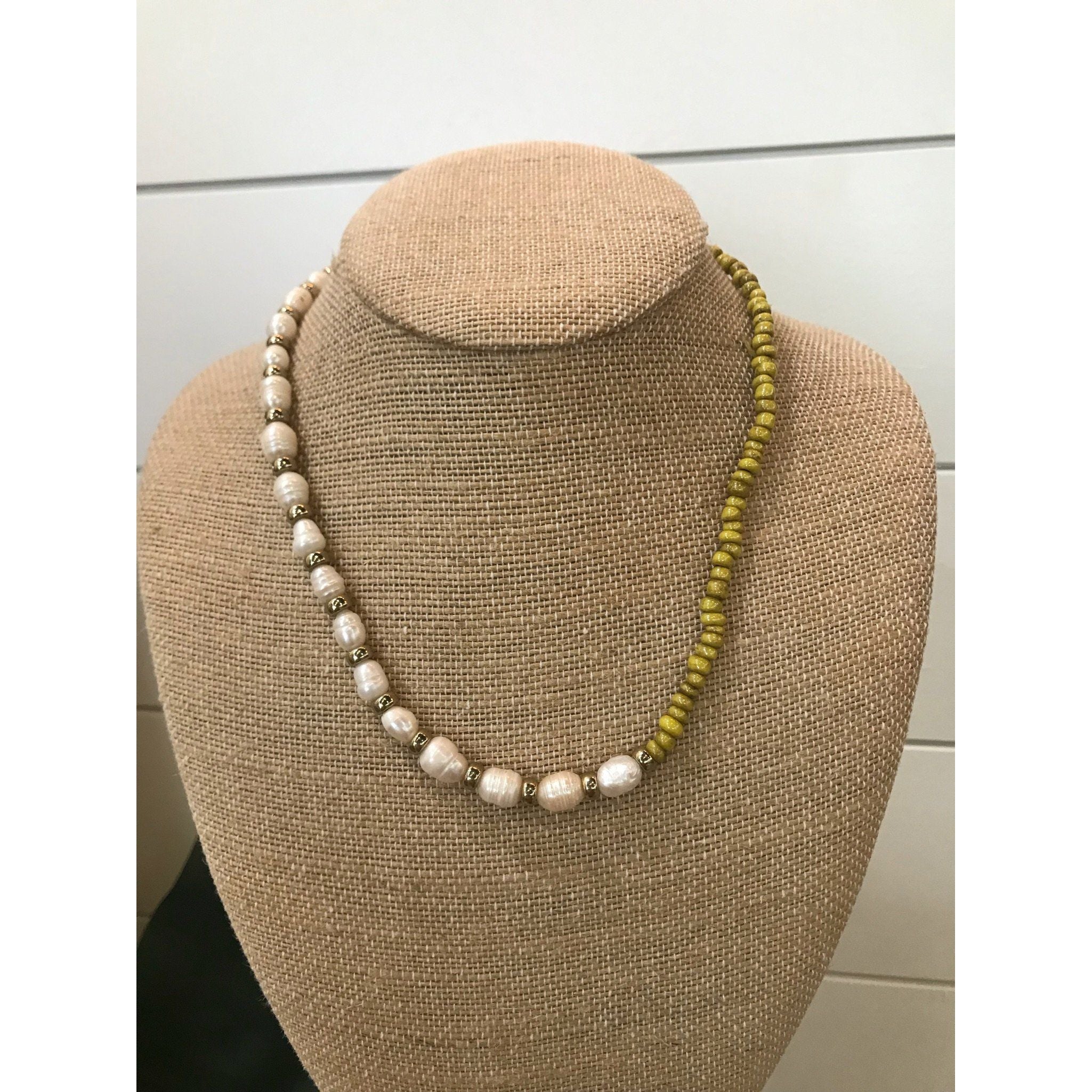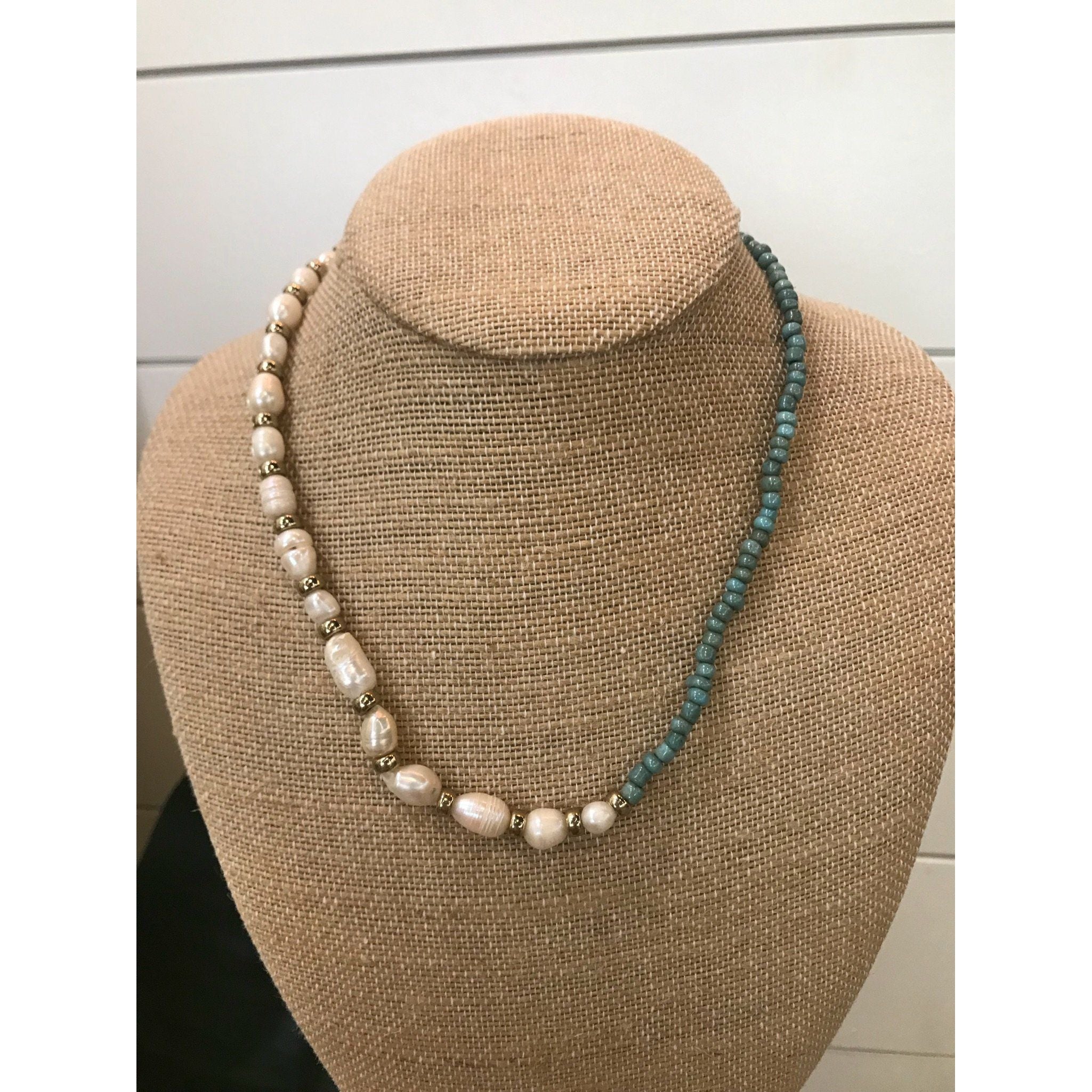 The Daffodil Necklace is a beautiful statement piece with half pearls and half seed beads. Its such a great combo for everyday wear!