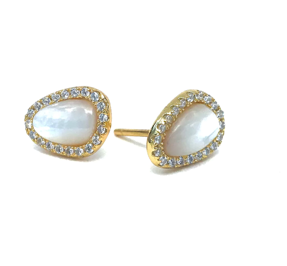 Silver Girl Pave Oval Opal Post Mother of Pearl