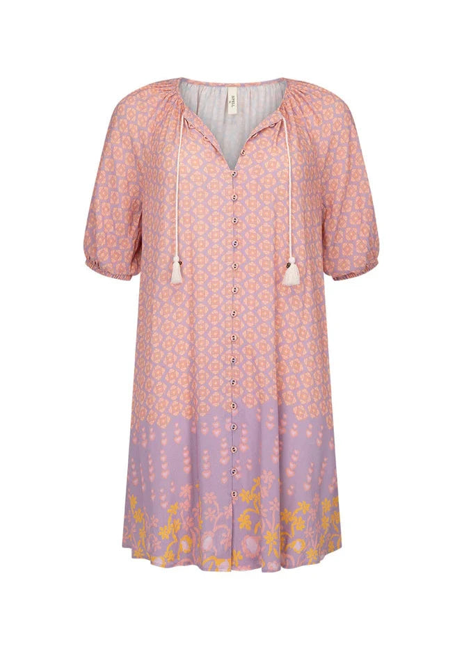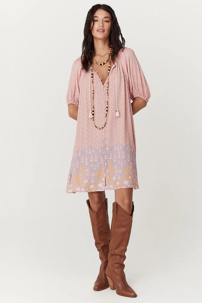ThisS pell Sweet Nothings Button Through Tunic Dress is delicate and dream-like with its voluminous silhouette and enchanting sunwashed pink, lilac, orange tones. The button through front and hand-painted heart motifs add exquisite detail to this effortlessly graceful piece.