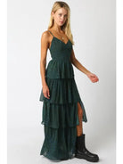 The Olivaceous Linda Ruffle Dress brings flirty charm with its V-neckline, delicate lace, and layered ruffles. A front leg slit adds a touch of sass to your stylish, fun look.