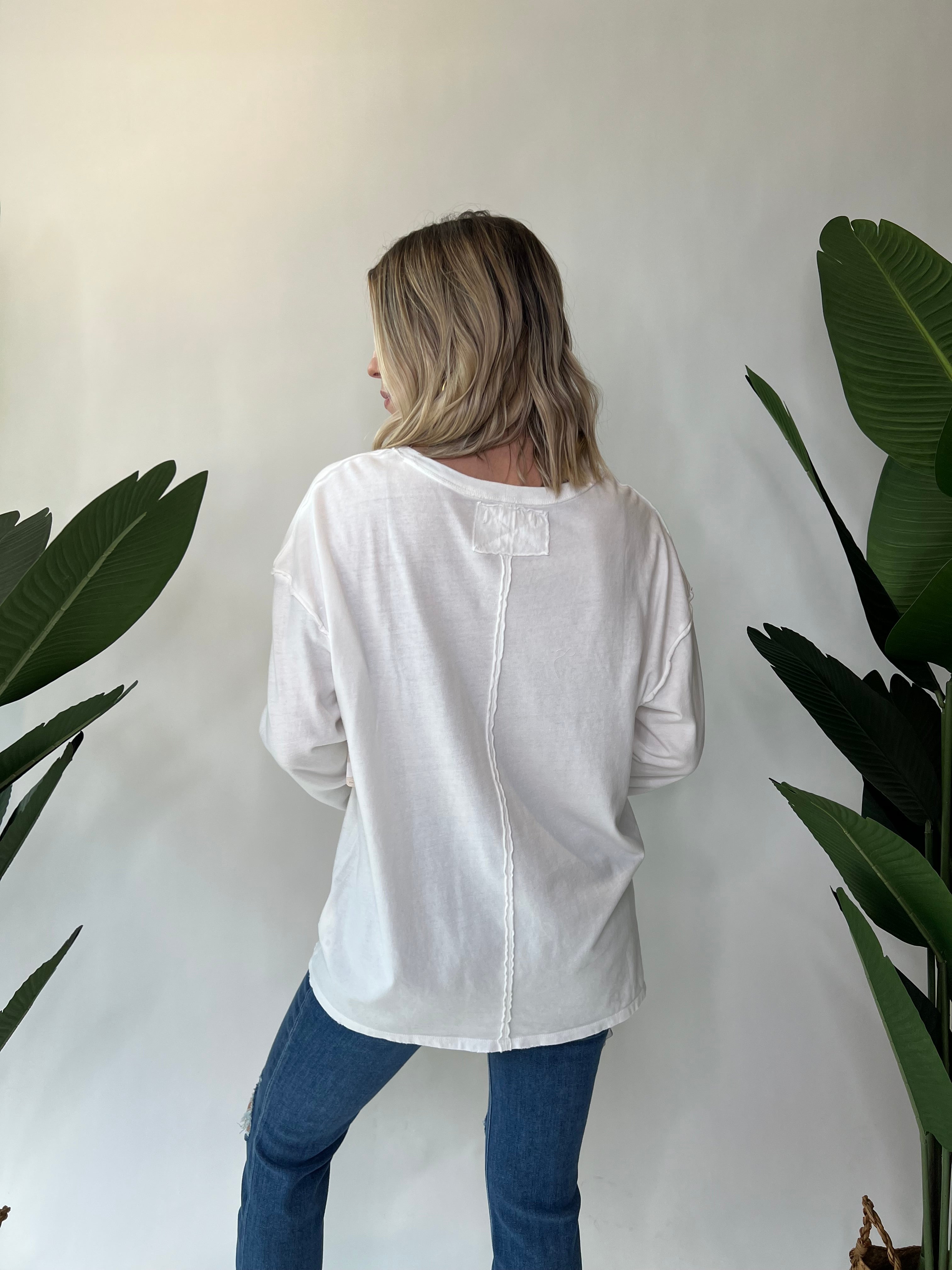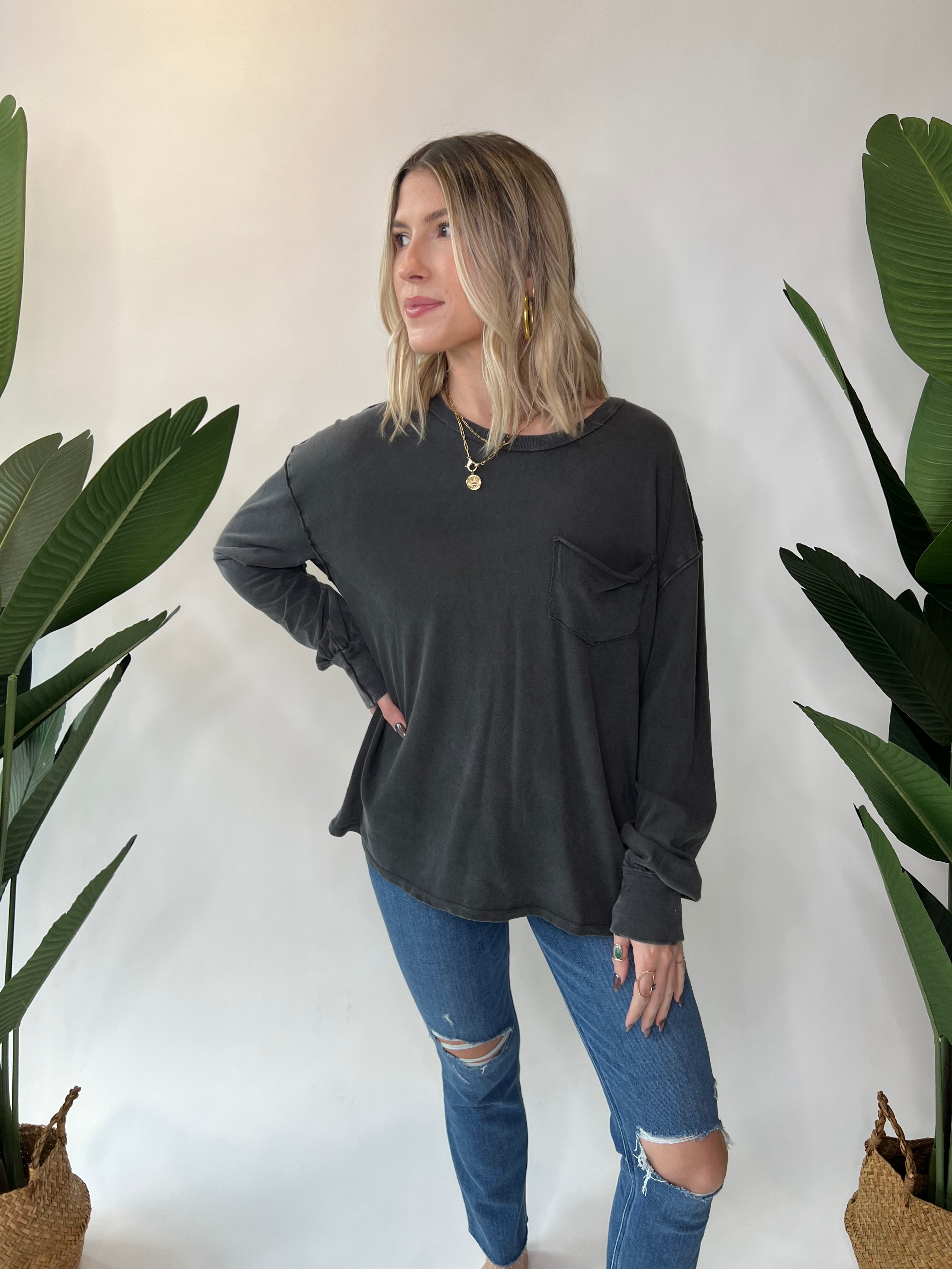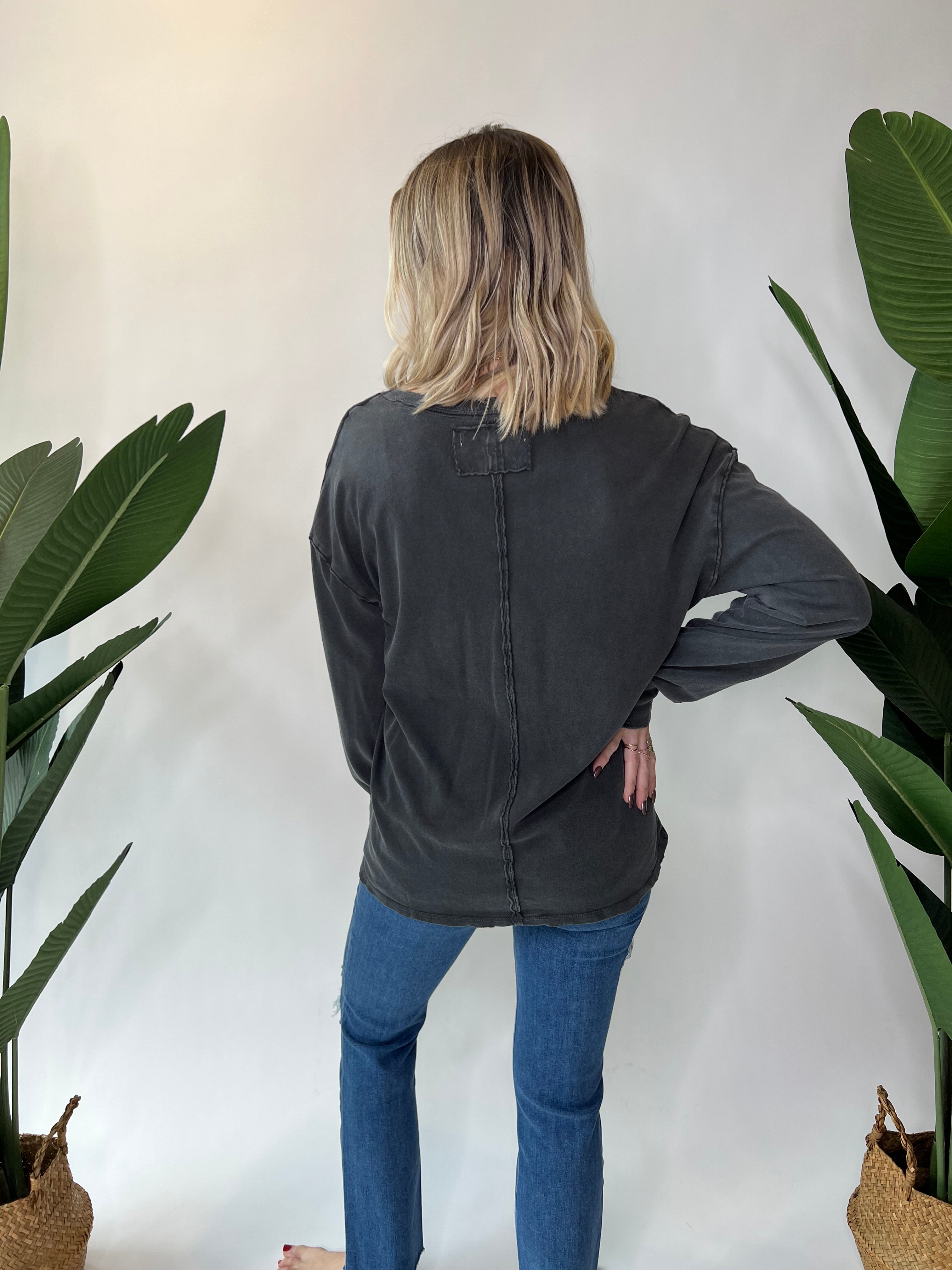 Look no further the perfect oversized boyfriend long sleeve tee is here. Wear long and loose with leggings or tucked in with denim.