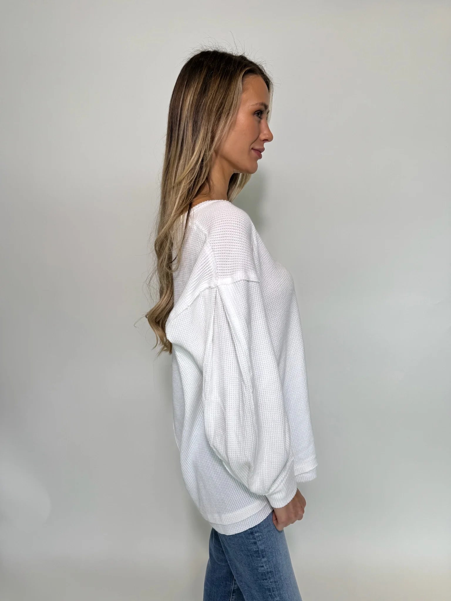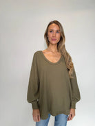 The Free People Coast 2 Coast Thermal is your go-to for cozy vibes. With waffle knit texture, a V-neckline, and slouchy drop-shoulder sleeves, it’s perfectly laid-back and effortlessly cool!
