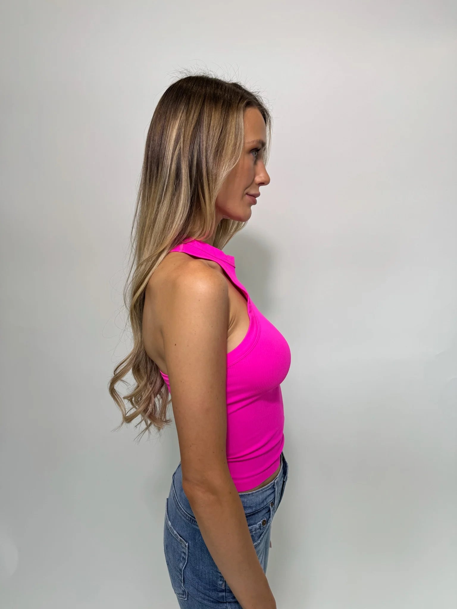 Run in style with the Free People Dynamite Tank. Its fitted, stretchy fabric stays put while the high neck and racerback with contrast trim add sleek vibes. Perfectly compressive and ready to move!