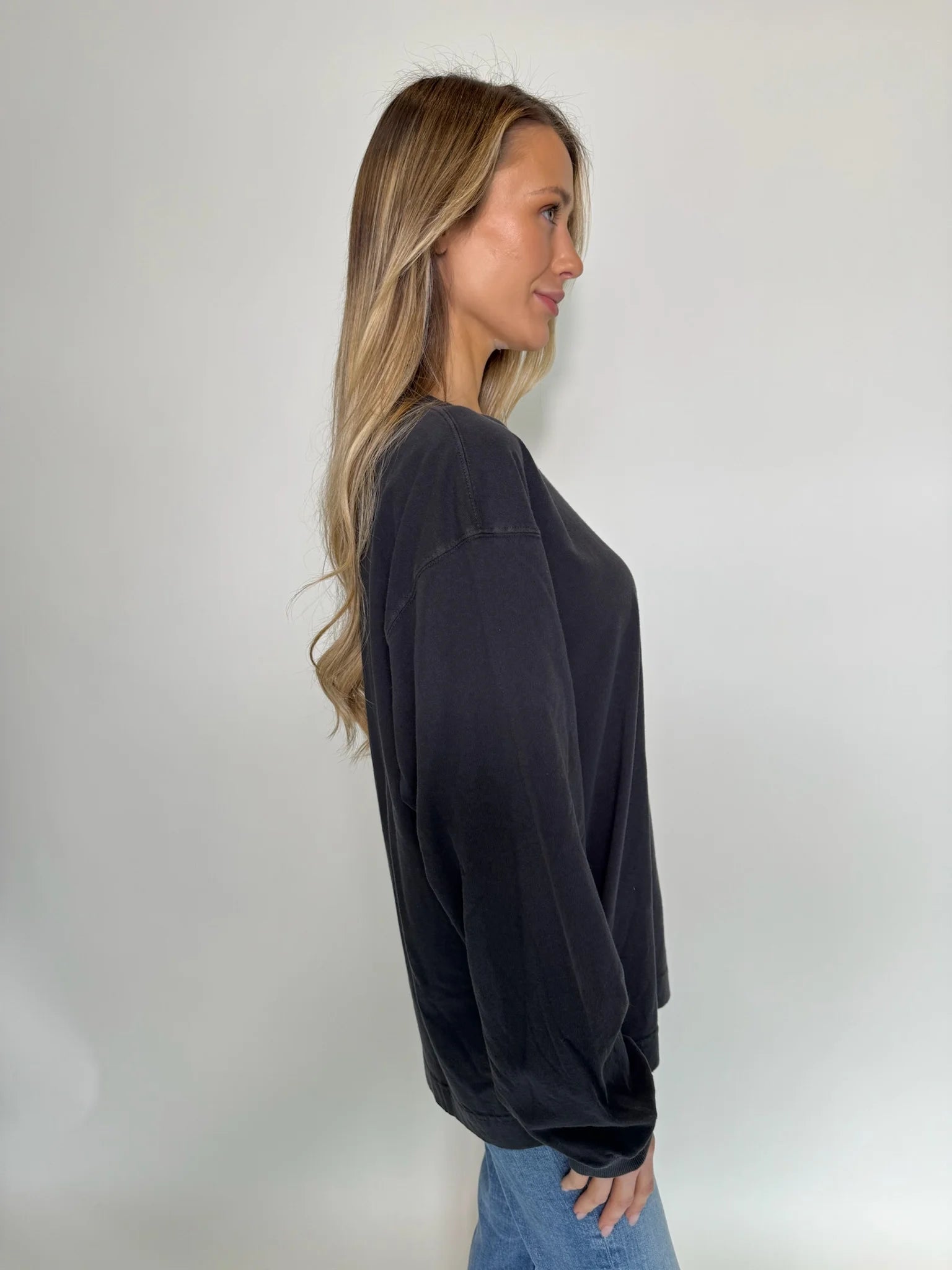 This super soft long sleeve offers a relaxed, slouchy fit with a scoop neckline and dropped shoulders for laid-back style. Featuring defined seams and side slits, it’s perfect for layering over or under your favorite look.