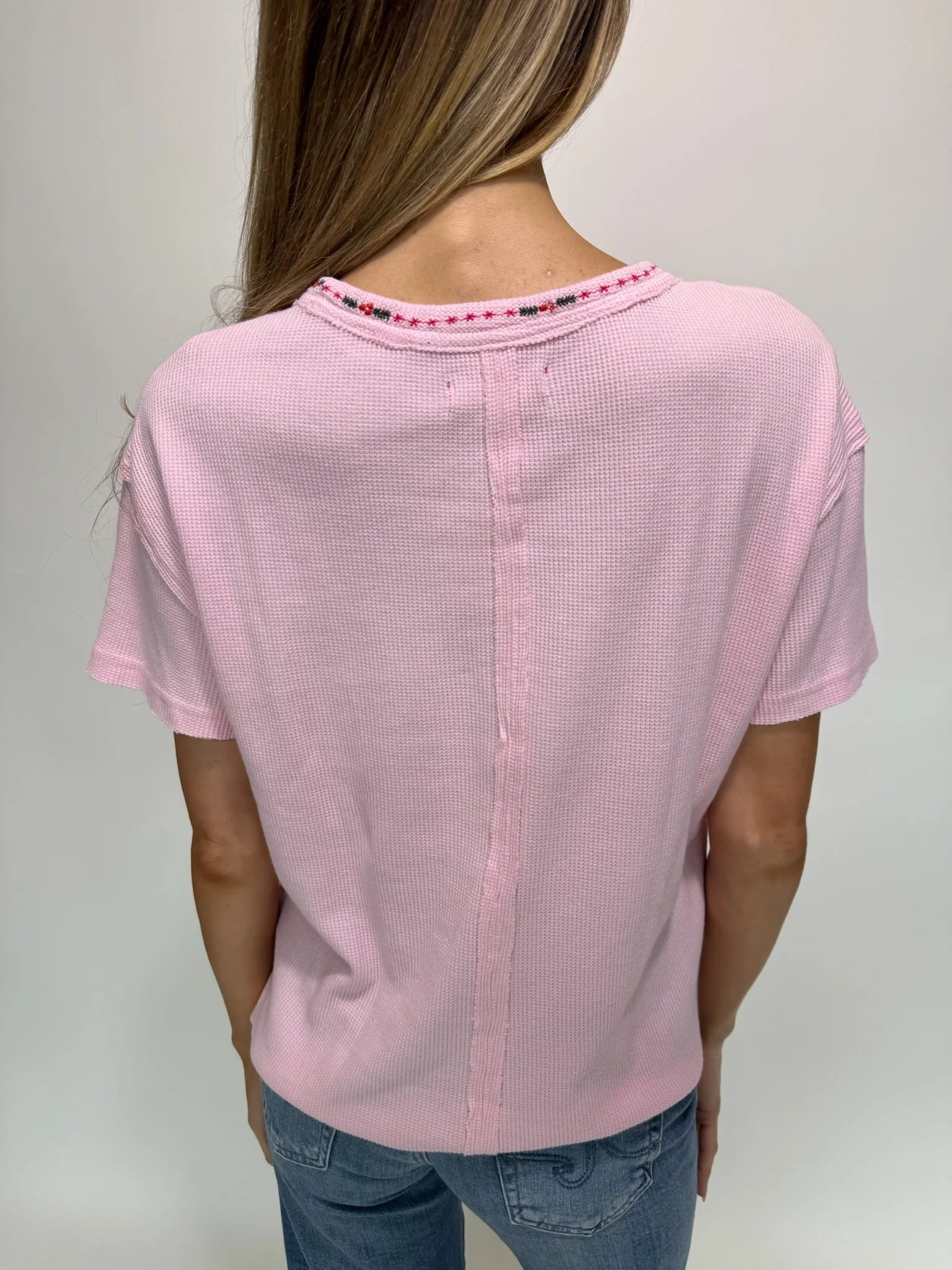 Get festive with the Free People Merry Meowy Tee! Cozy thermal fabric, exposed seams, and a cute cat or dog graphic make it a fun holiday must-have.