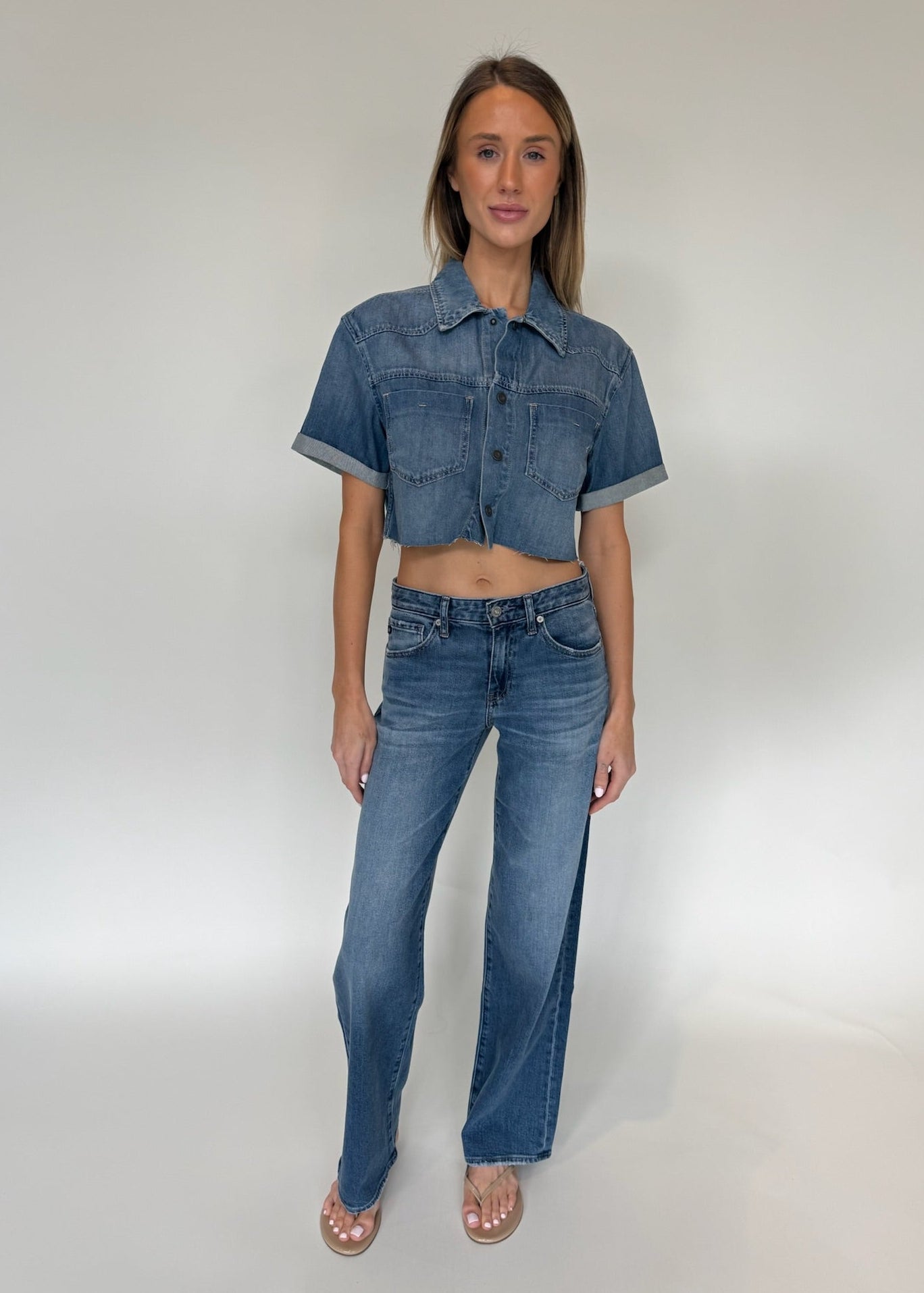 These AG Adria Headline pants deliver laid-back vibes with their low-rise waistband and wide-leg cut. Made from comfort-stretch fabric, they move with you all day long. Finished with busted hems, they bring a cool, worn-in look that’s effortlessly stylish. Perfect for relaxed days with a bold edge!