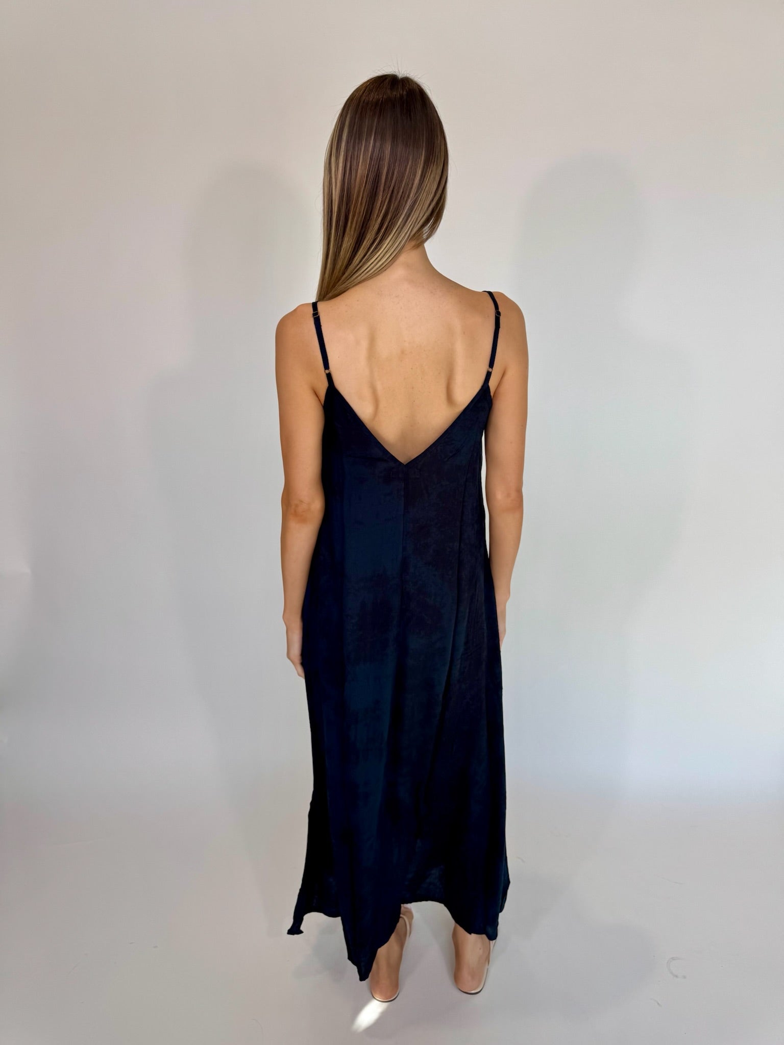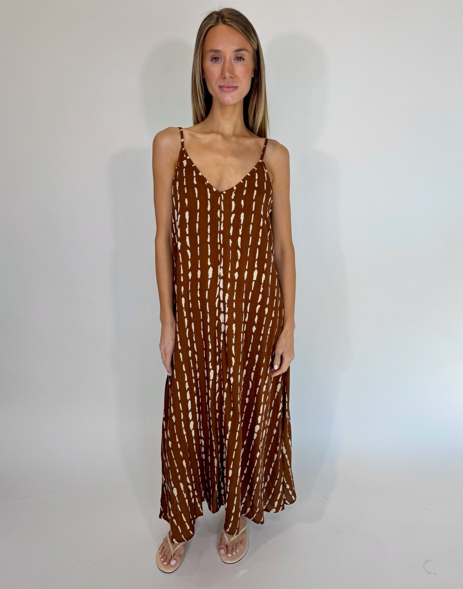 The Khush Eluna Dress delivers effortless style in a flowing maxi silhouette. Adjustable shoulder straps provide a customized fit, while the V-neckline flatters any frame. Functional side pockets keep essentials within reach, and the airy fabric drapes beautifully for all-day comfort. Perfect for travel, weekend adventures, or simply living your best life.