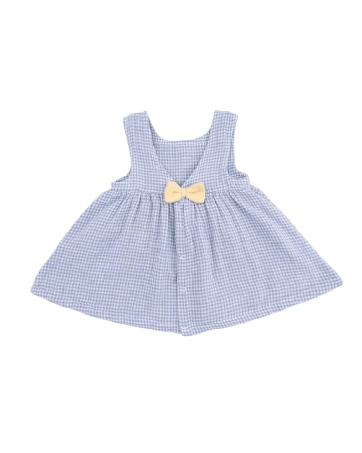 Angel Dear Micro Gingham Blue Blizzard Dress W/Bow & Bloomer