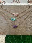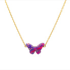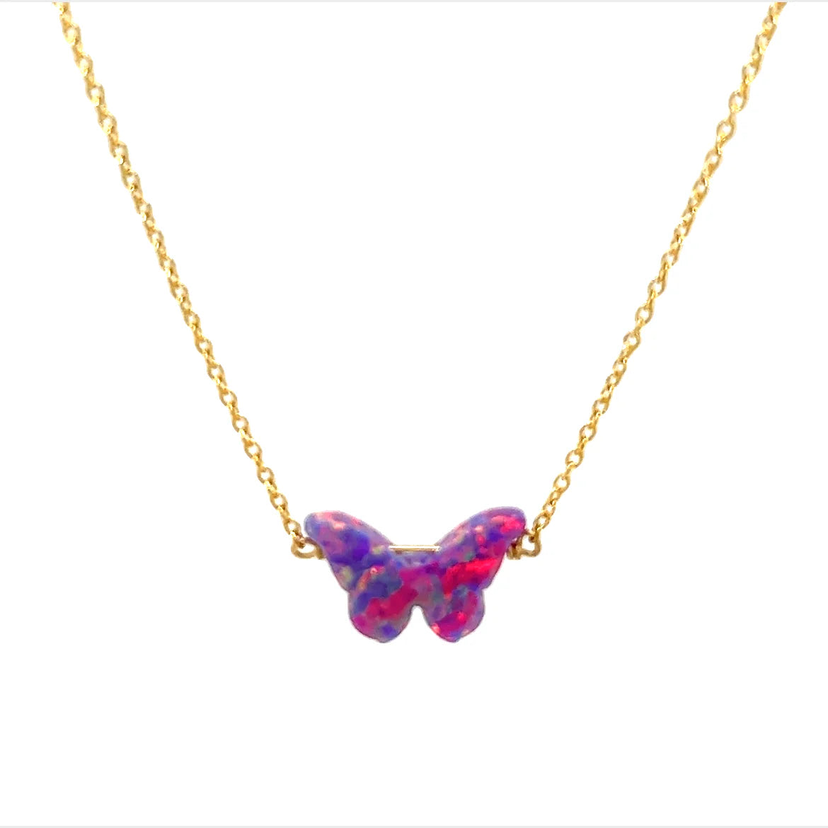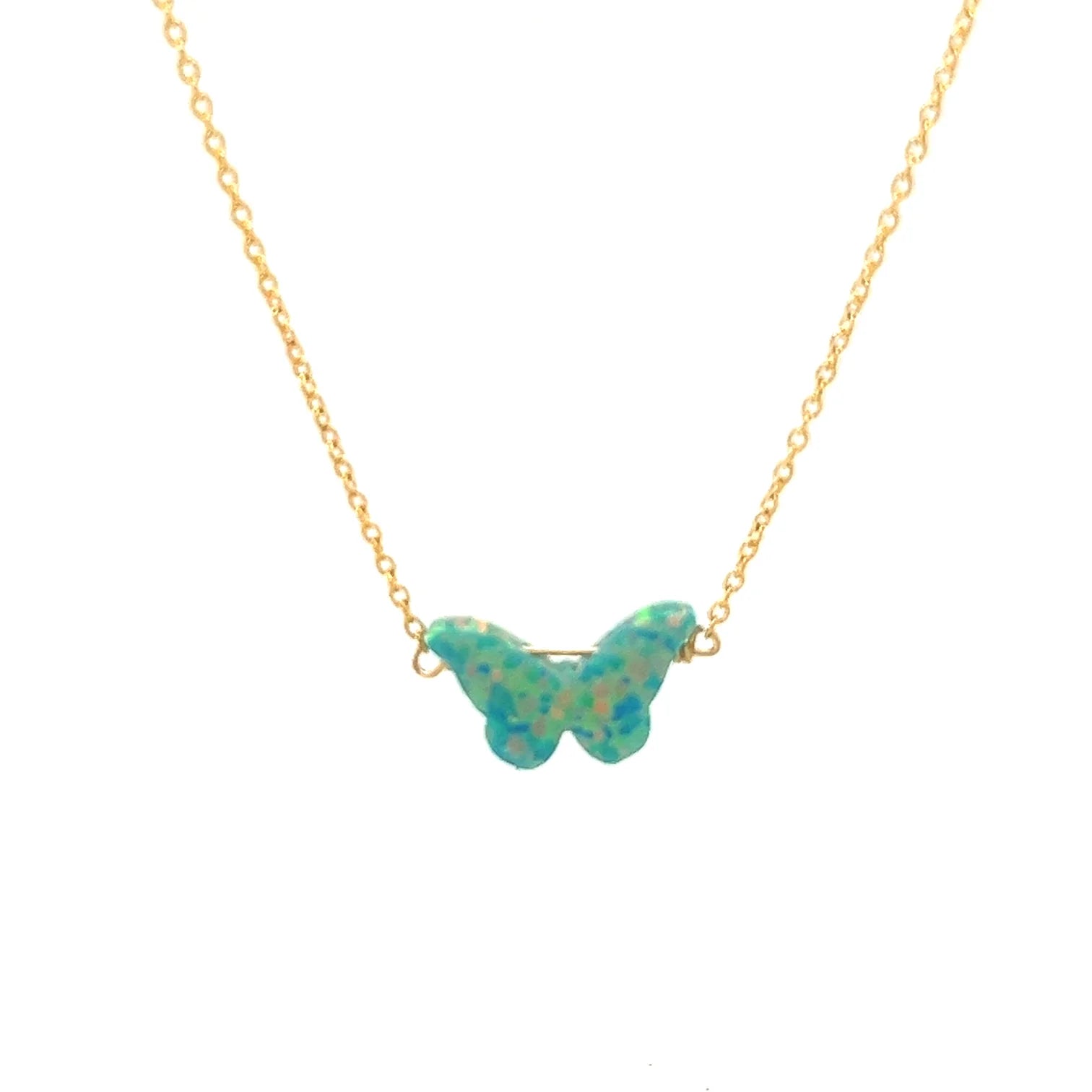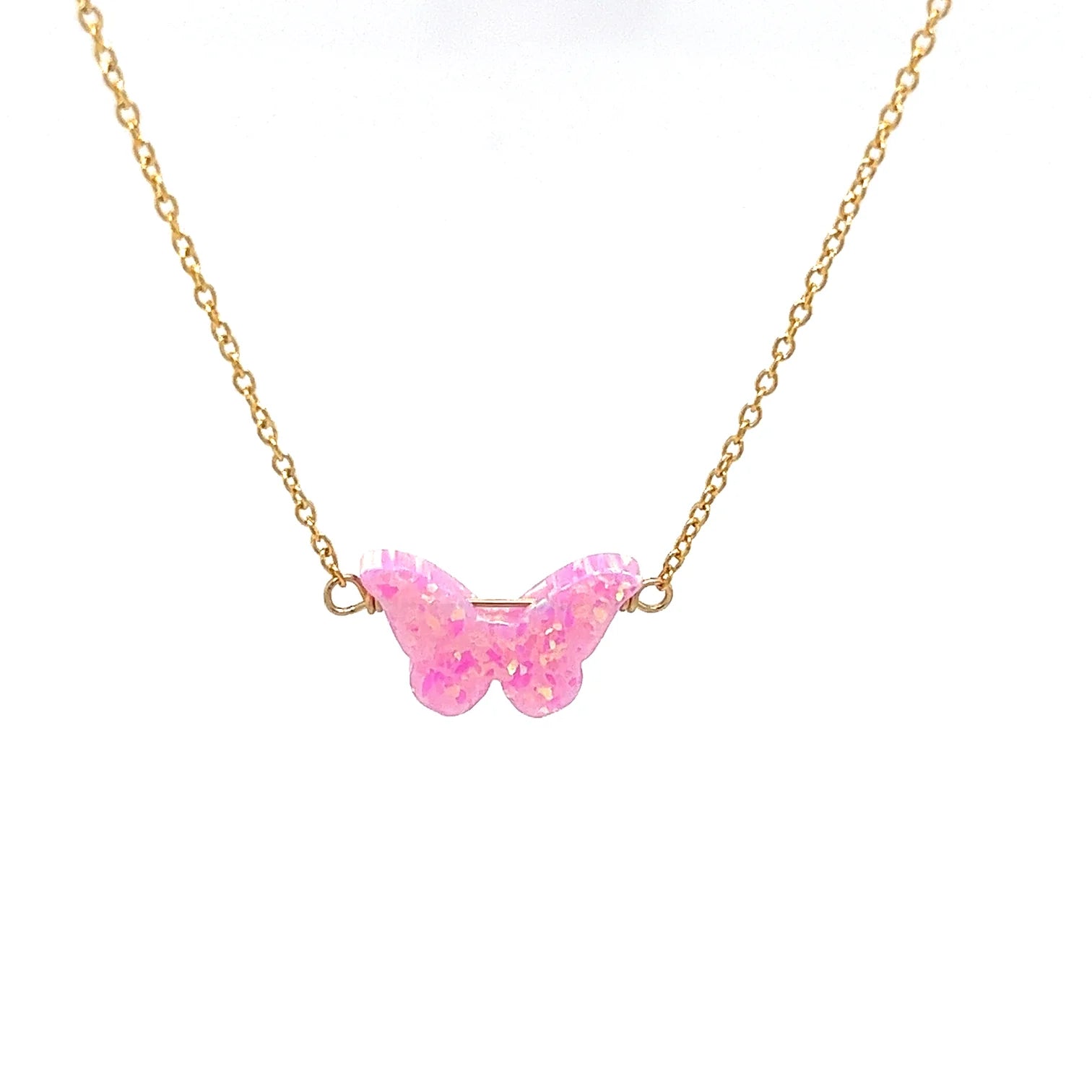 The Bara Boheme Kid Butterfly Opal Necklace dazzles with a delicate opal butterfly charm on a shiny 14k gold chain. It’s a playful and precious accessory perfect for brightening any outfit!