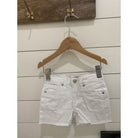 The Markie Short is a great white denim cut off jean short with slight distressing.