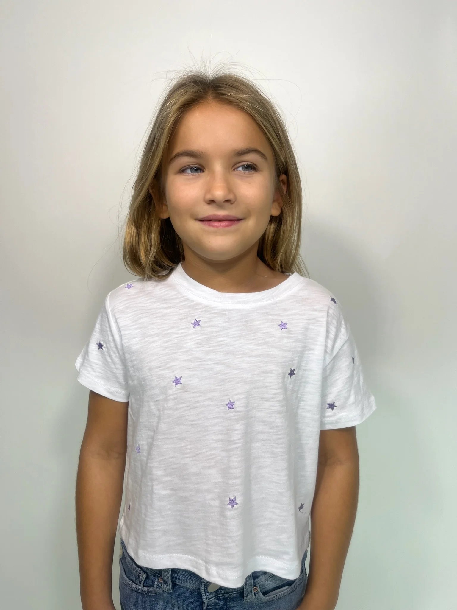 The Katie J Fearless Embroidered Crop Tee is a must-have piece that fits any occasion. Embroidered stars add a chic touch, making it a stylish and essential wardrobe favorite!