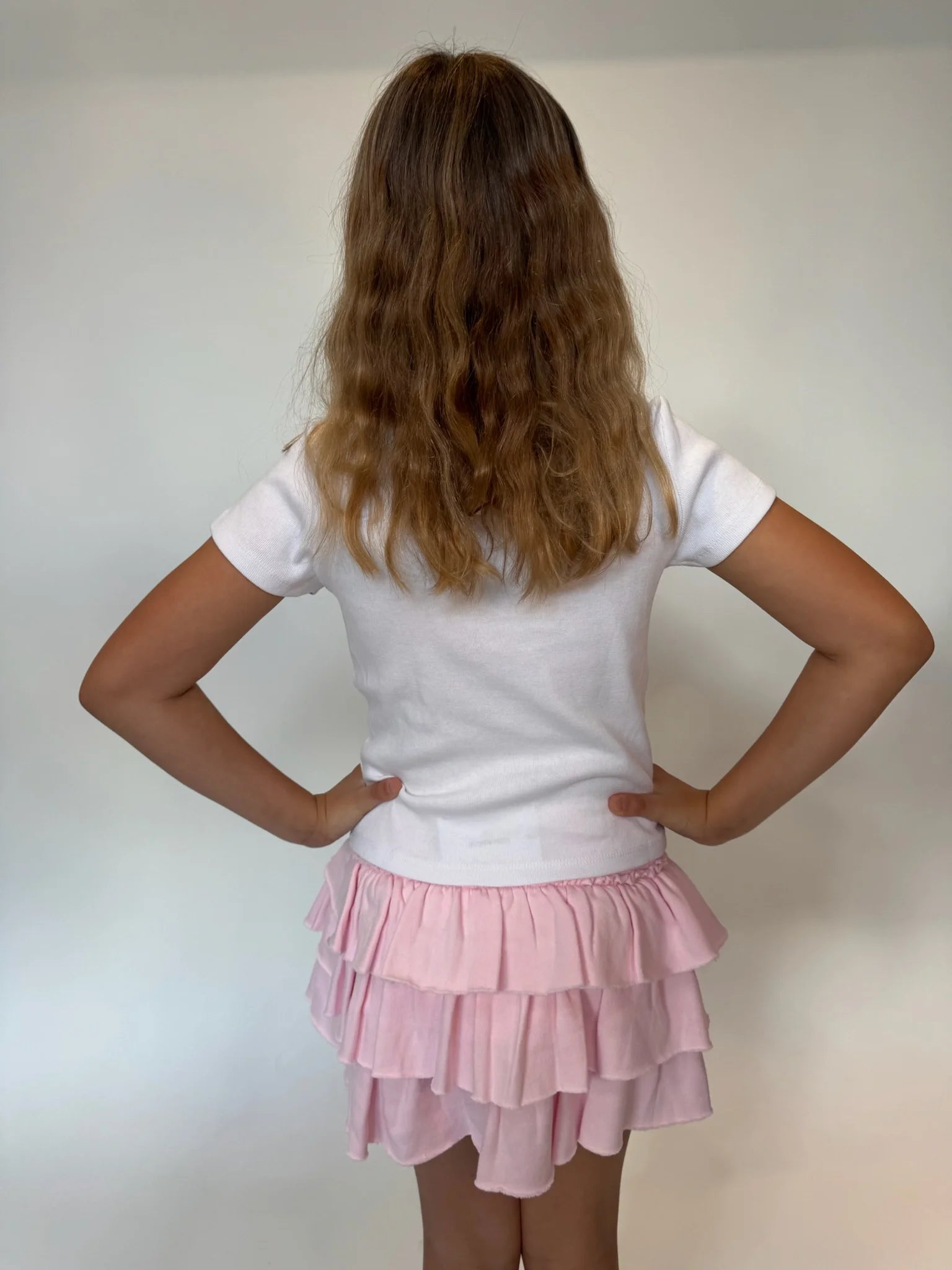 The Katie J Shane Skort is the perfect blend of style and practicality. Adorable tiered ruffles create movement and dimension, while the elastic waist ensures a comfortable, secure fit all day long. Built-in shorts underneath mean she can play, run, and jump without worry.