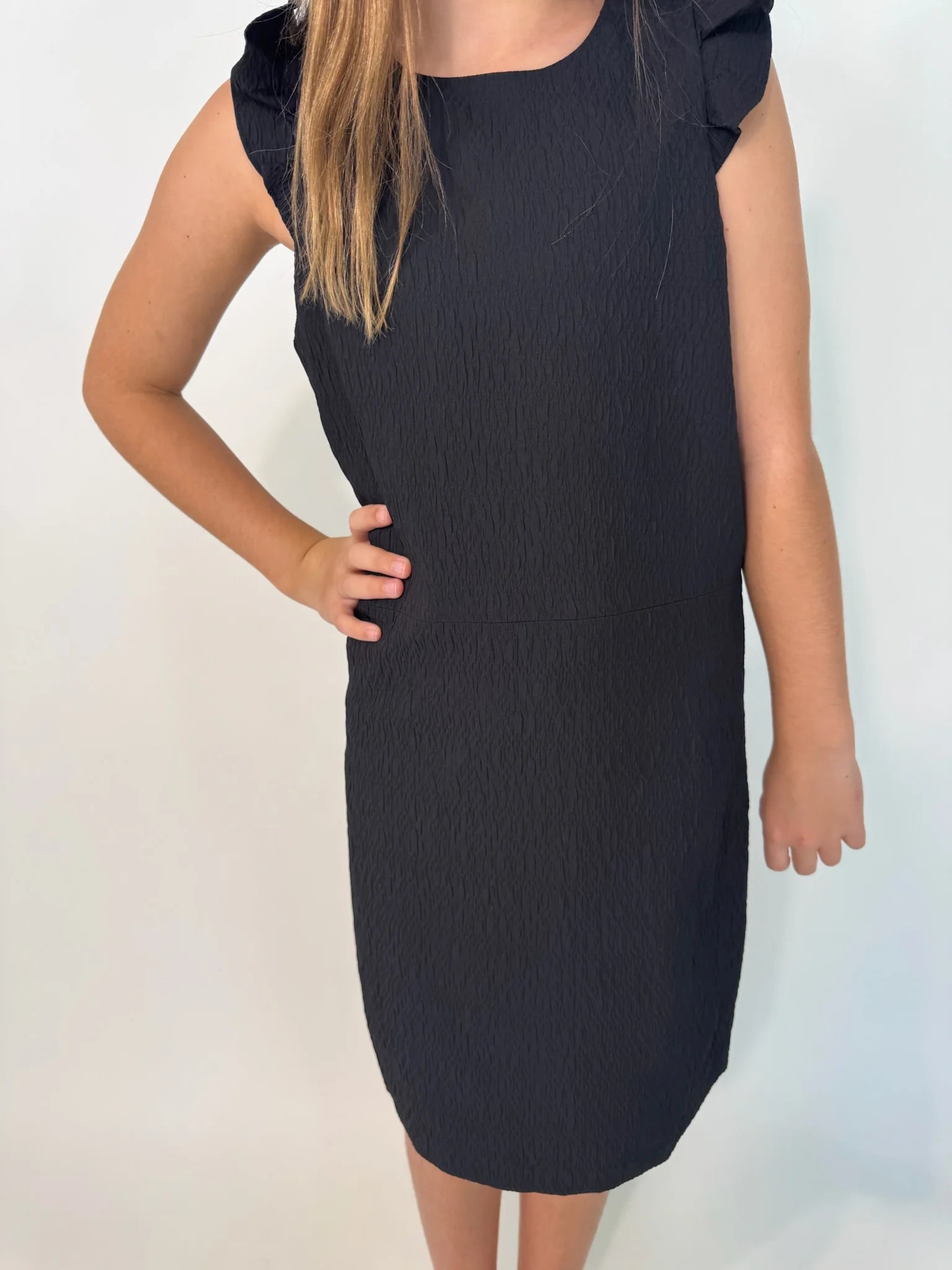 The Little Olin Ruffle Dress is a playful pick, featuring cute ruffle cap sleeves and a softly textured fabric that keeps style effortless and fun.