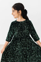 Shine bright in the Mila & Rose Velvet Sequin Dress. Whether it's a birthday bash, wedding celebration, family photo session, or special event, this dazzling dress creates pure magic. Perfect for making memories that last a lifetime.