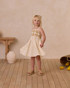 Elevate your little one's summer wardrobe with our Rylee & Cru Crochet Sundress in Marigold. This sweet sundress features a crochet bodice in a charming 'marigold daisy' pattern, giving off groovy retro vibes. With a full a-line skirt, your child will stay cool and stylish all season long.