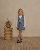 Unleash your inner cool girl with this Rylee & Cru Denim Vest! Featuring three brass shank buttons and a pointed hem, this vest will add a touch of edge to any outfit. Plus, the embroidered design on the back adds playful touch. Perfect for little girls who want to stand out.