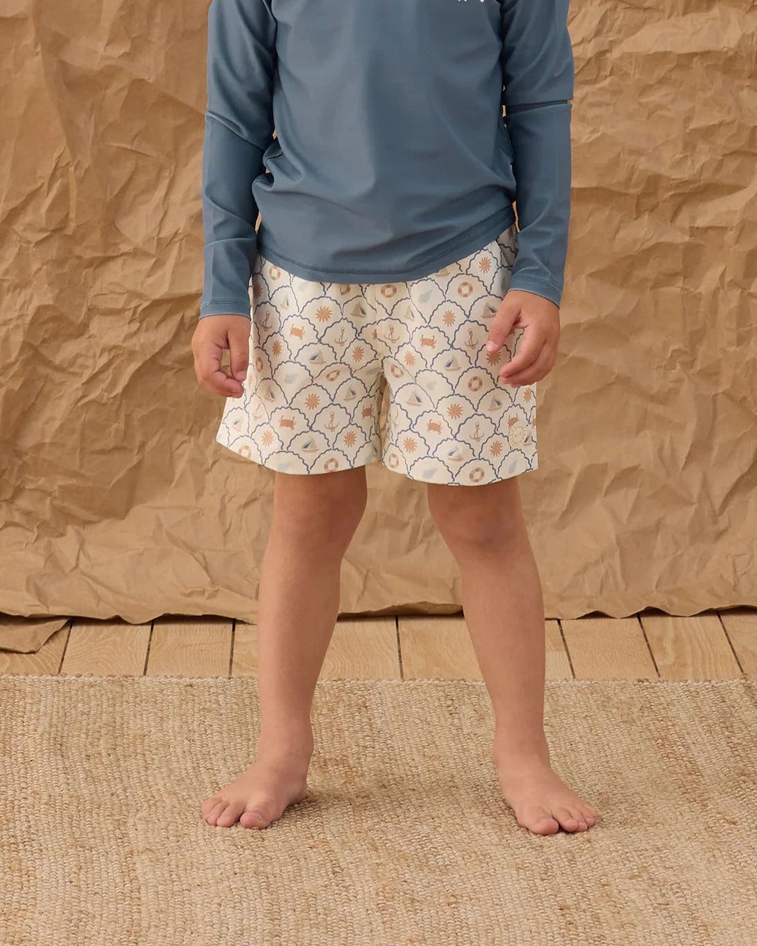 Dive into fun with these Rylee & Cru Nautical Boardshorts that bring beachy vibes wherever your little one goes. The drawstring waist keeps them secure during all those splashes and adventures, while the timeless maritime design never goes out of style. Perfect for beach days, pool parties, or backyard water play.