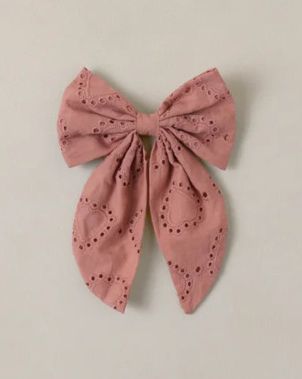 The Rylee & Cru Everly bow is an oversized accessory that brings sweetness and charm to any child's hairstyle. Featuring a delightful heart print, this bow adds a playful, vintage-inspired touch that kids absolutely love. Perfect for everyday wear or special occasions.