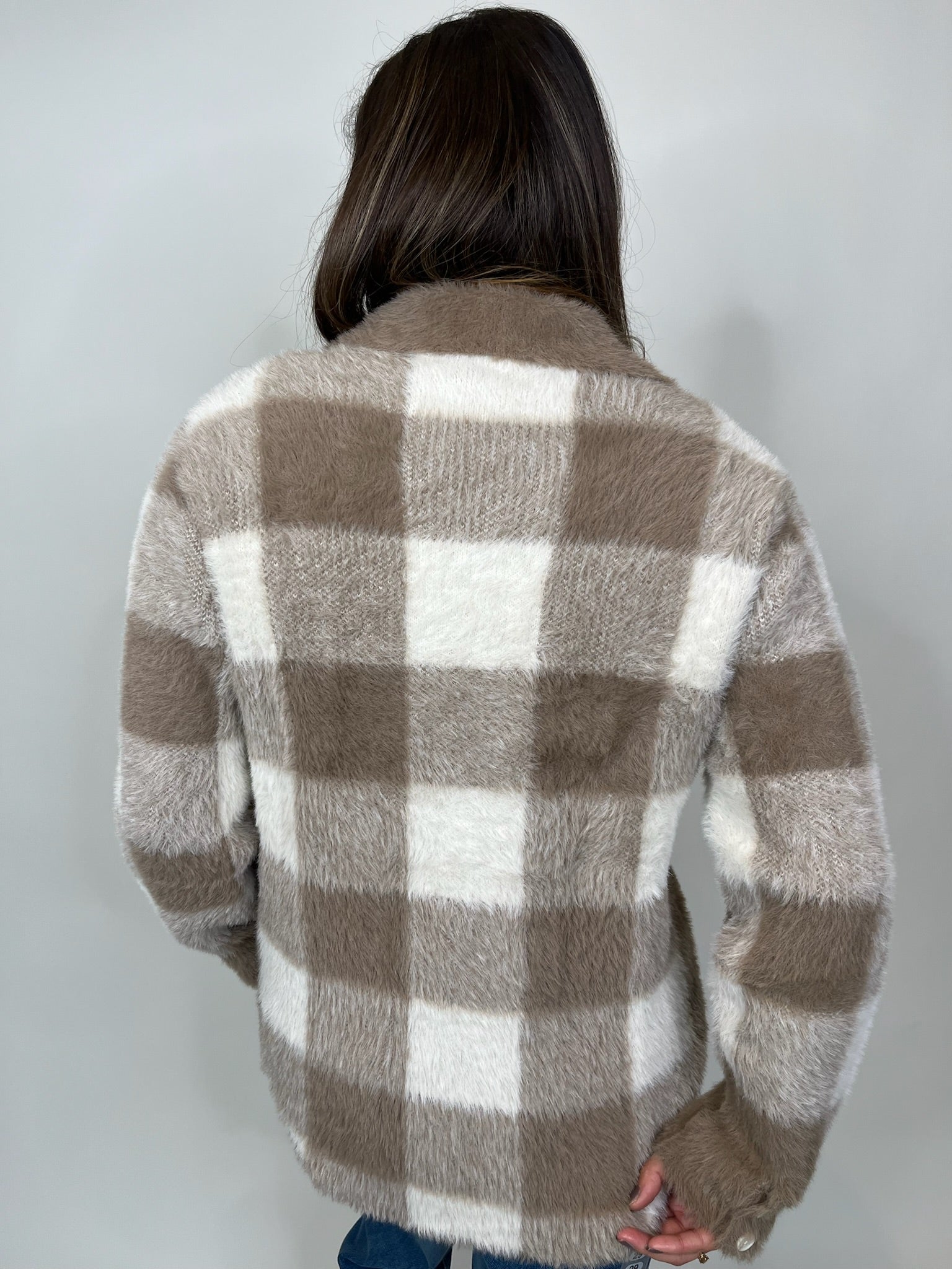 Stay cozy and stylish with the Bella Dahl Knitted Fuzzy Shacket. Its fuzzy texture and button down front make it the perfect choice for cooler seasons. So wrap yourself up and embrace the chill!