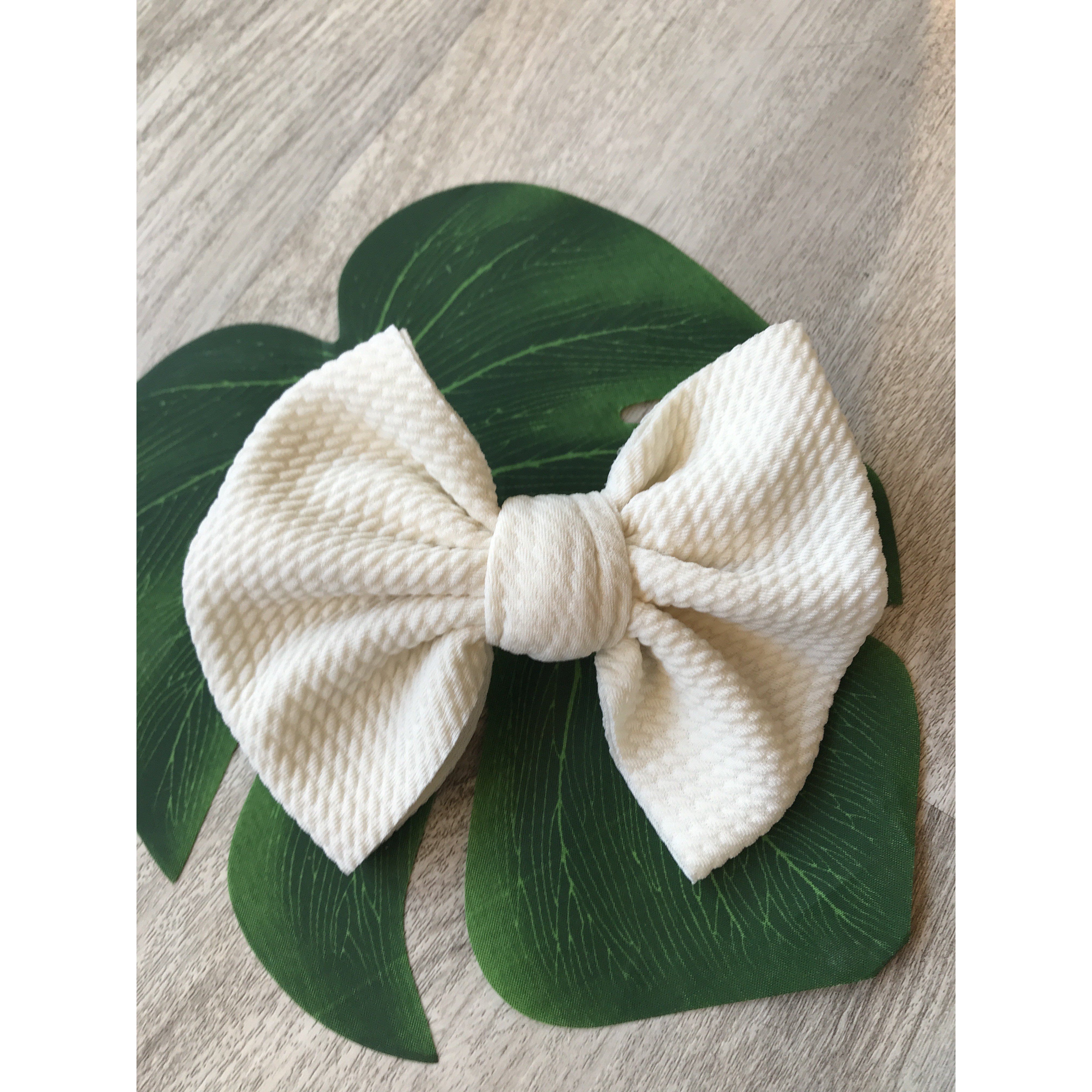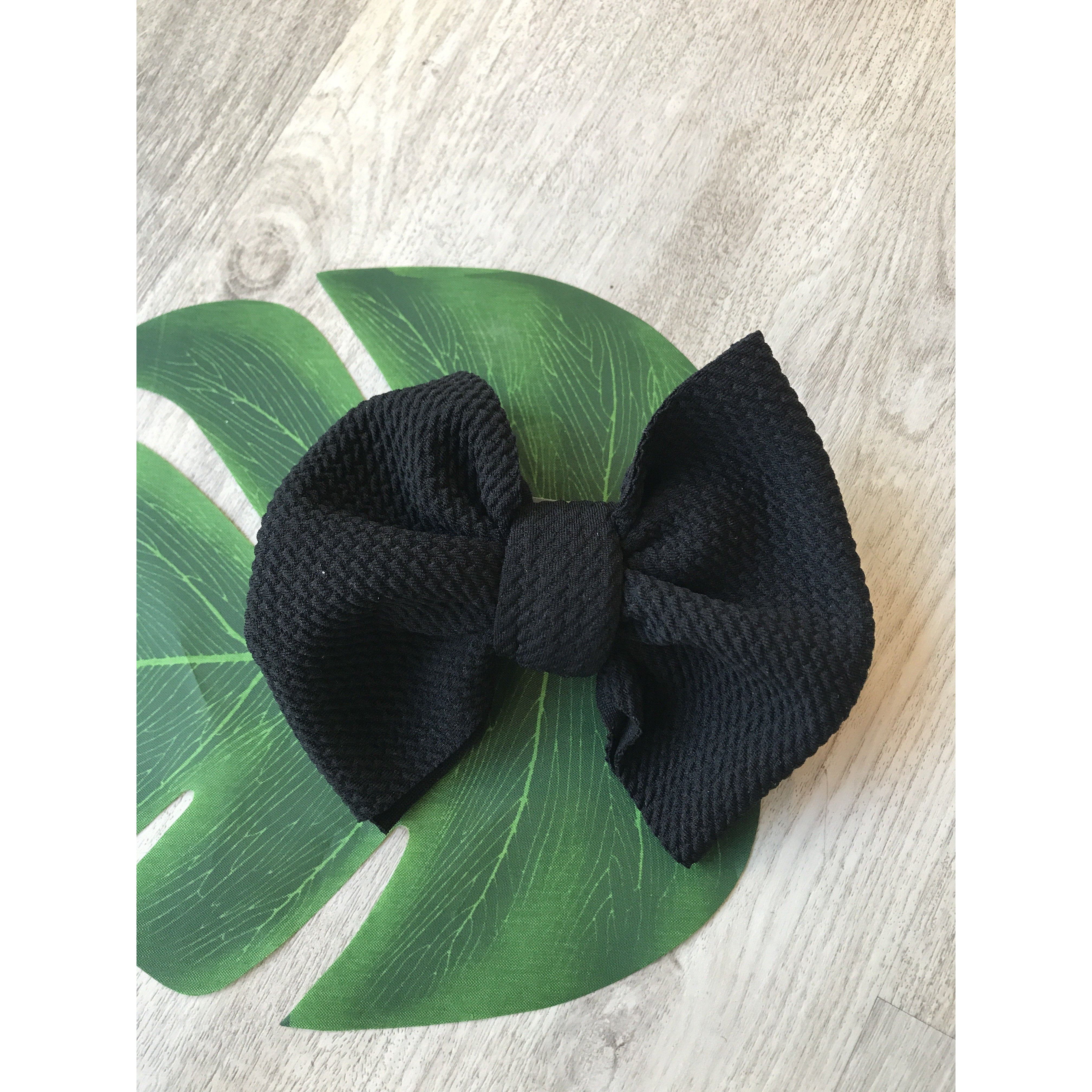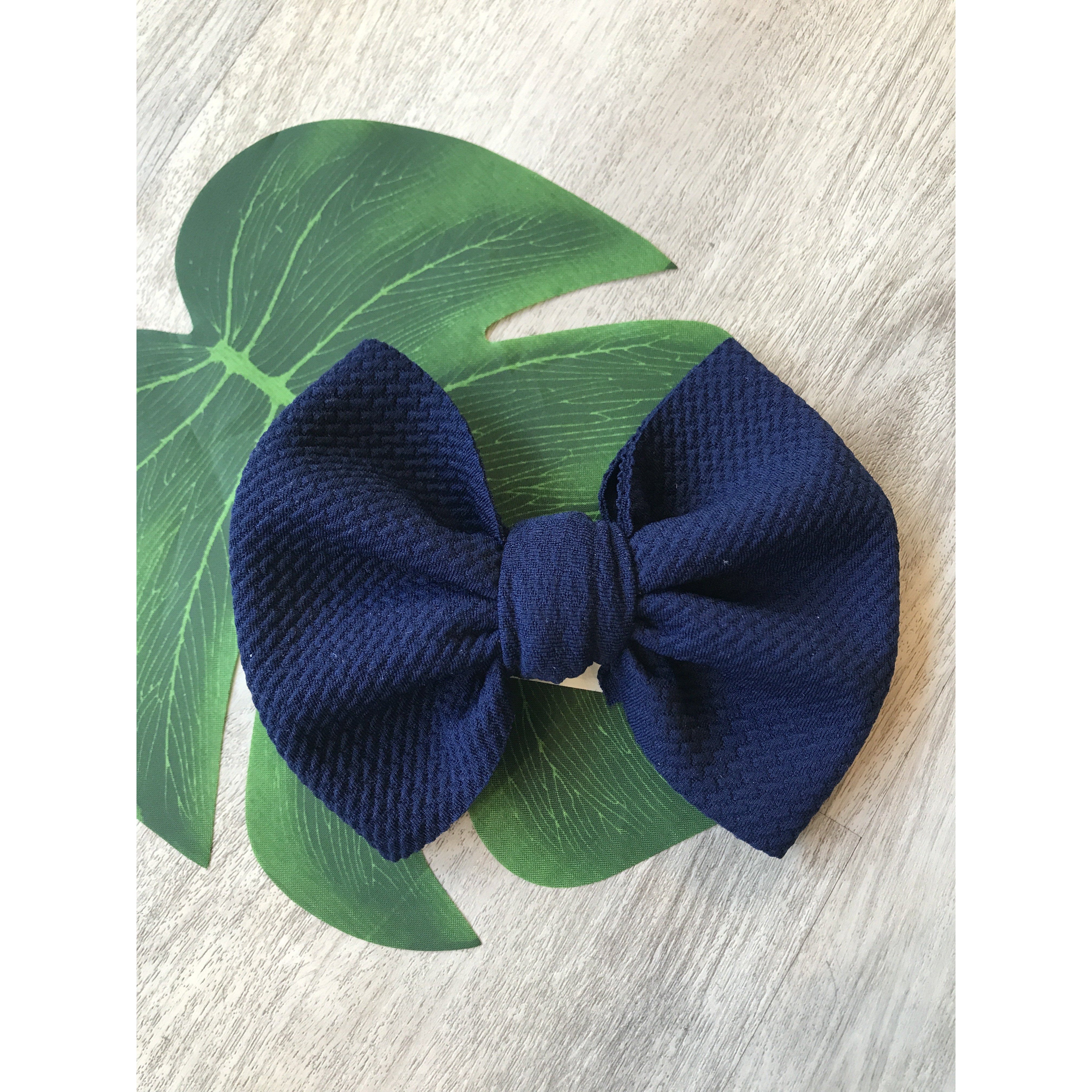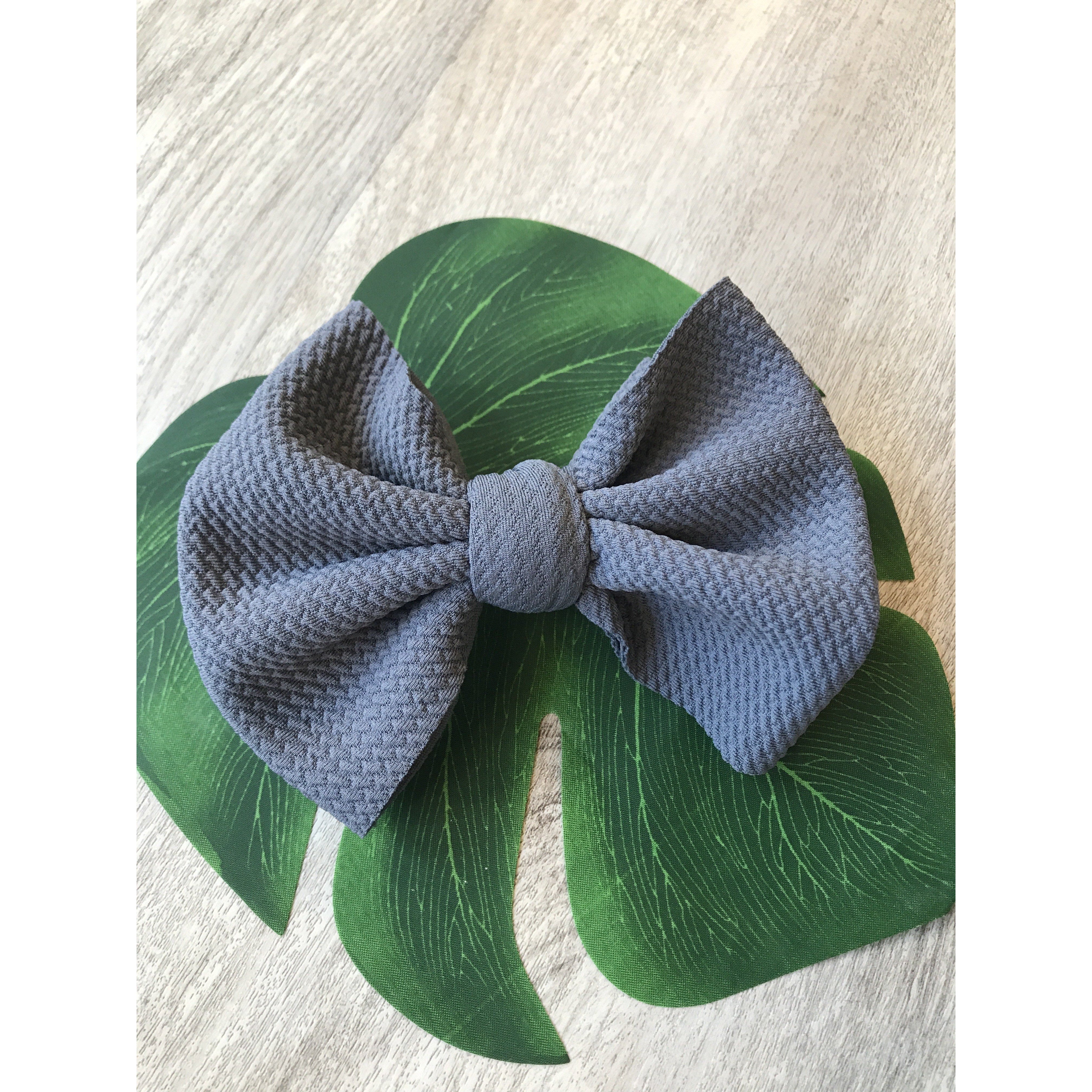 Handmade locally these big bows are attached to metal alligator clip. These bows can easily be clipped into a pony tail, braid, or side of hair.