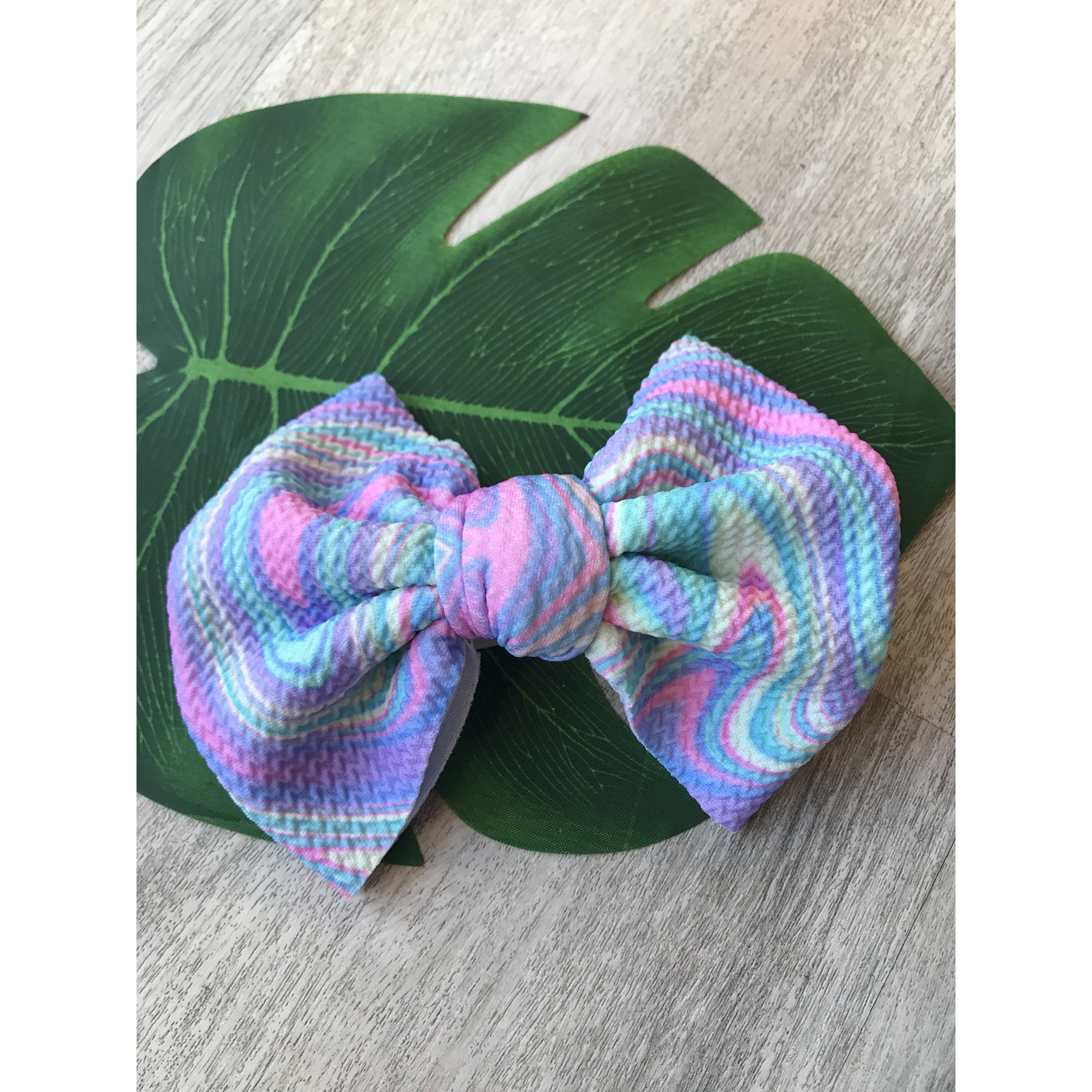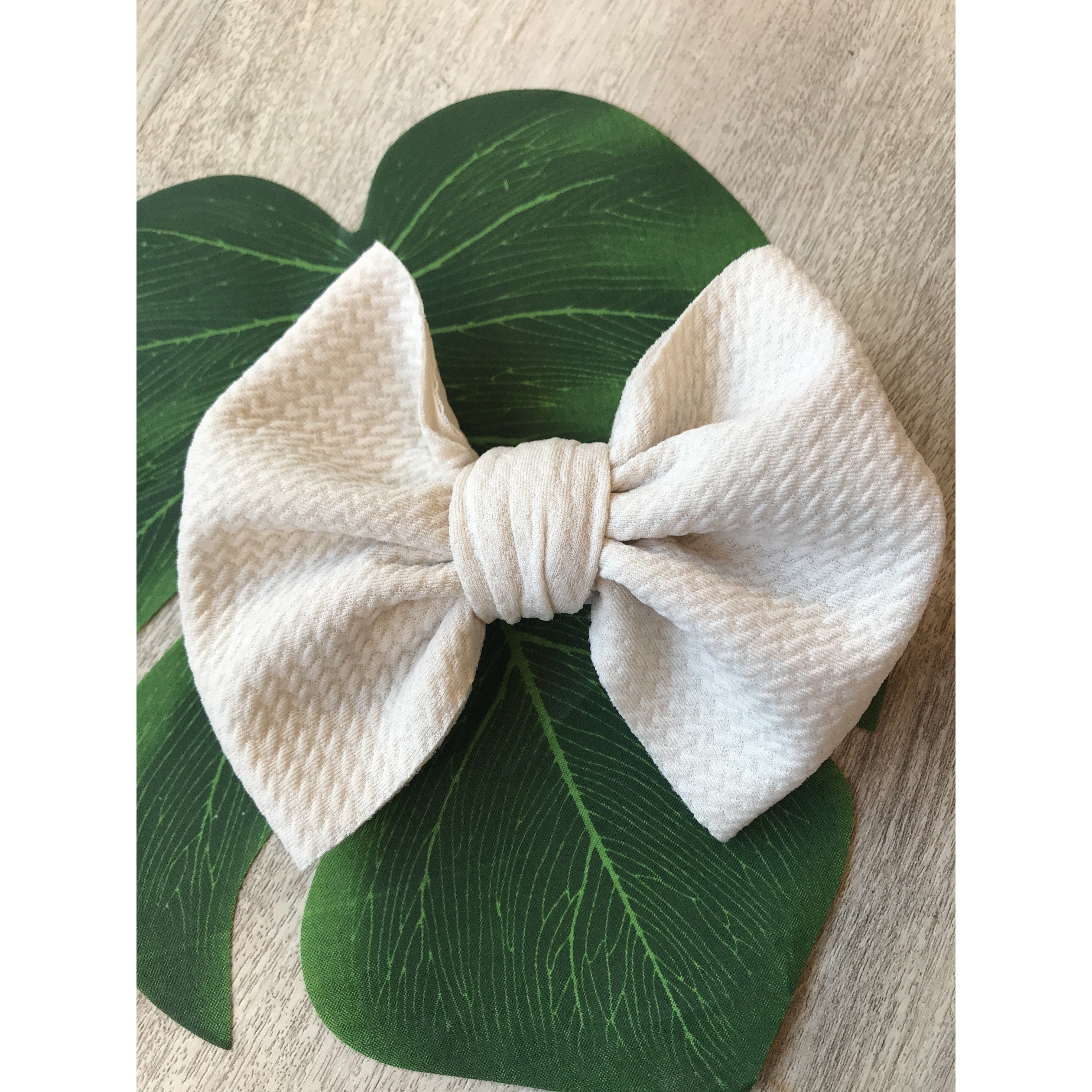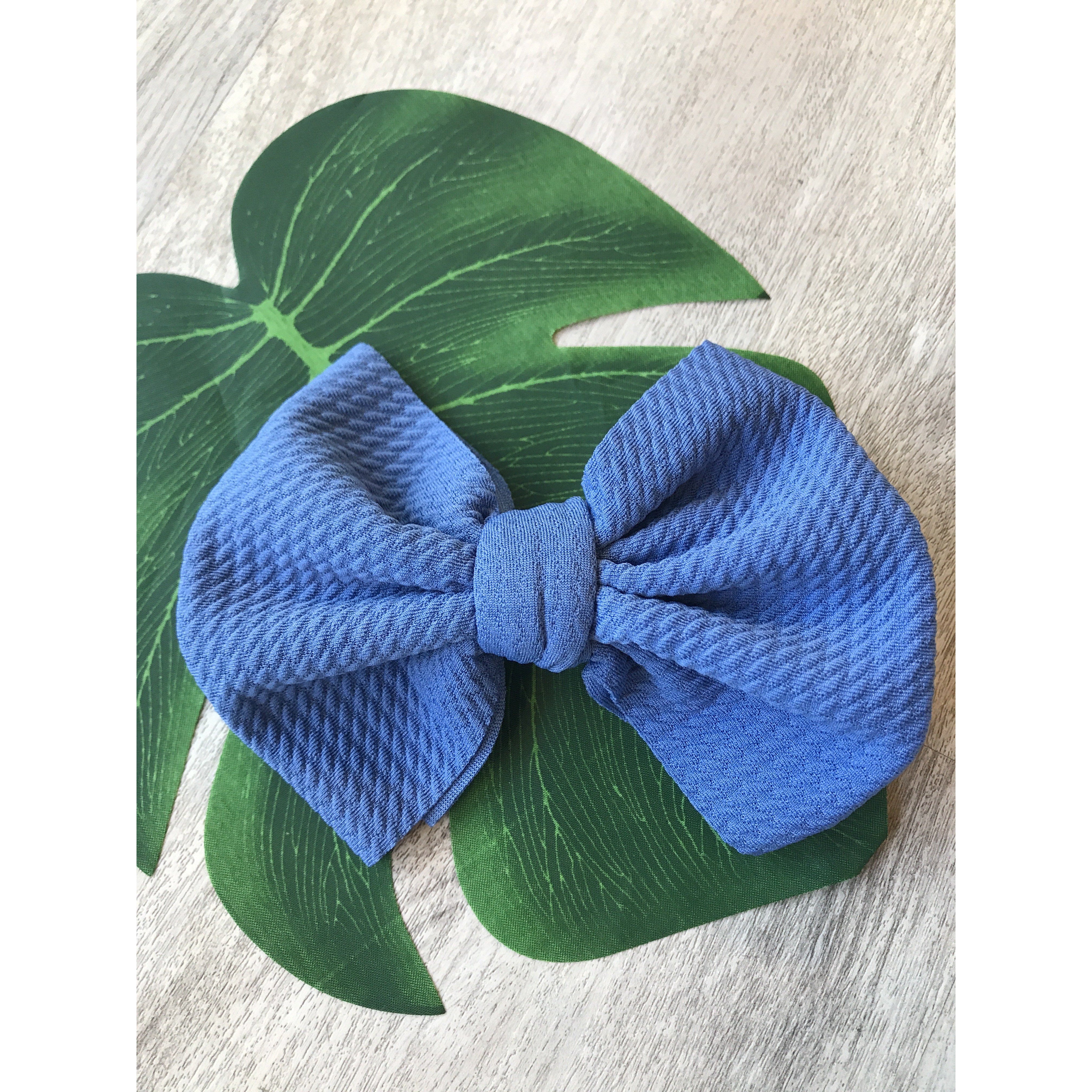 Handmade locally these big bows are attached to metal alligator clip. These bows can easily be clipped into a pony tail, braid, or side of hair.