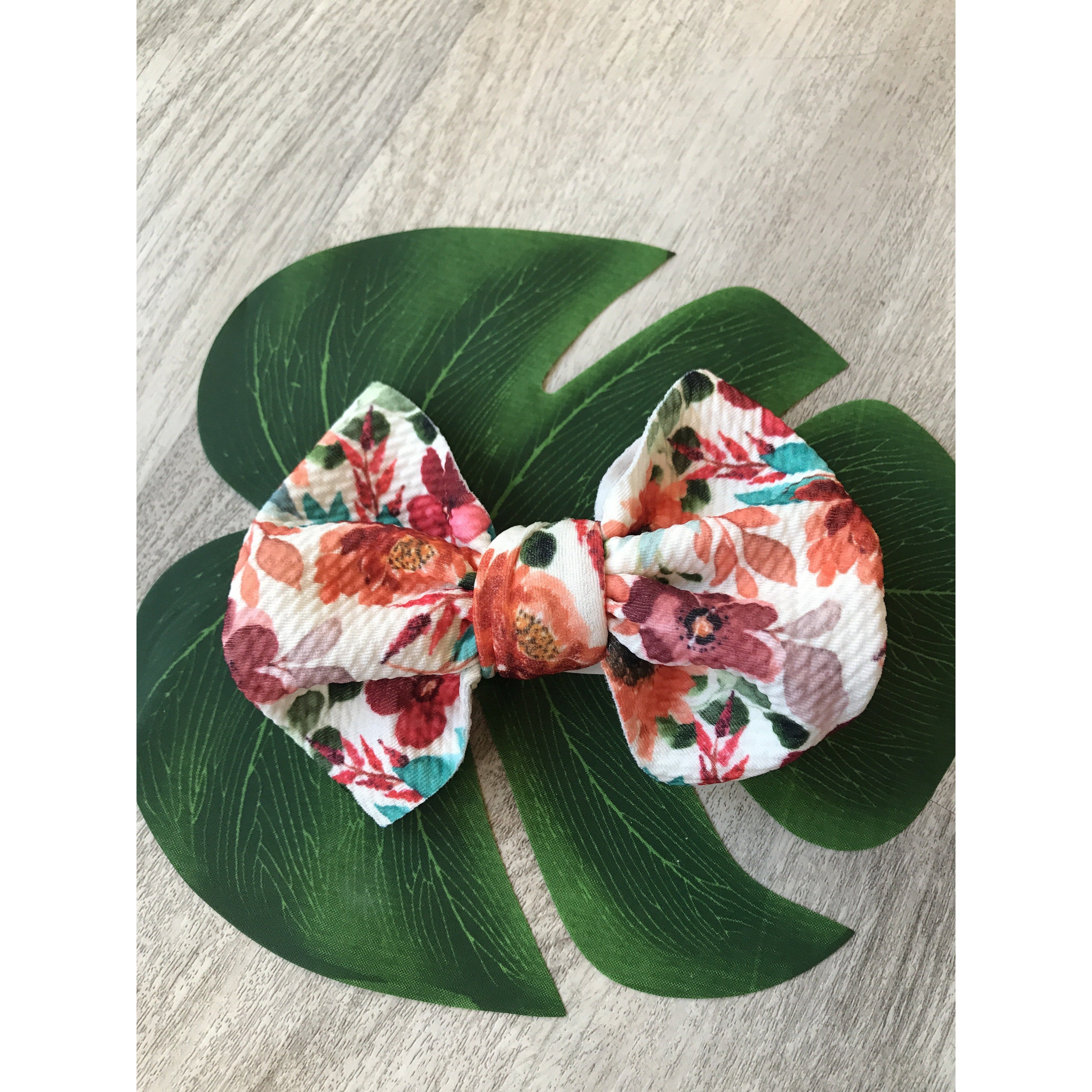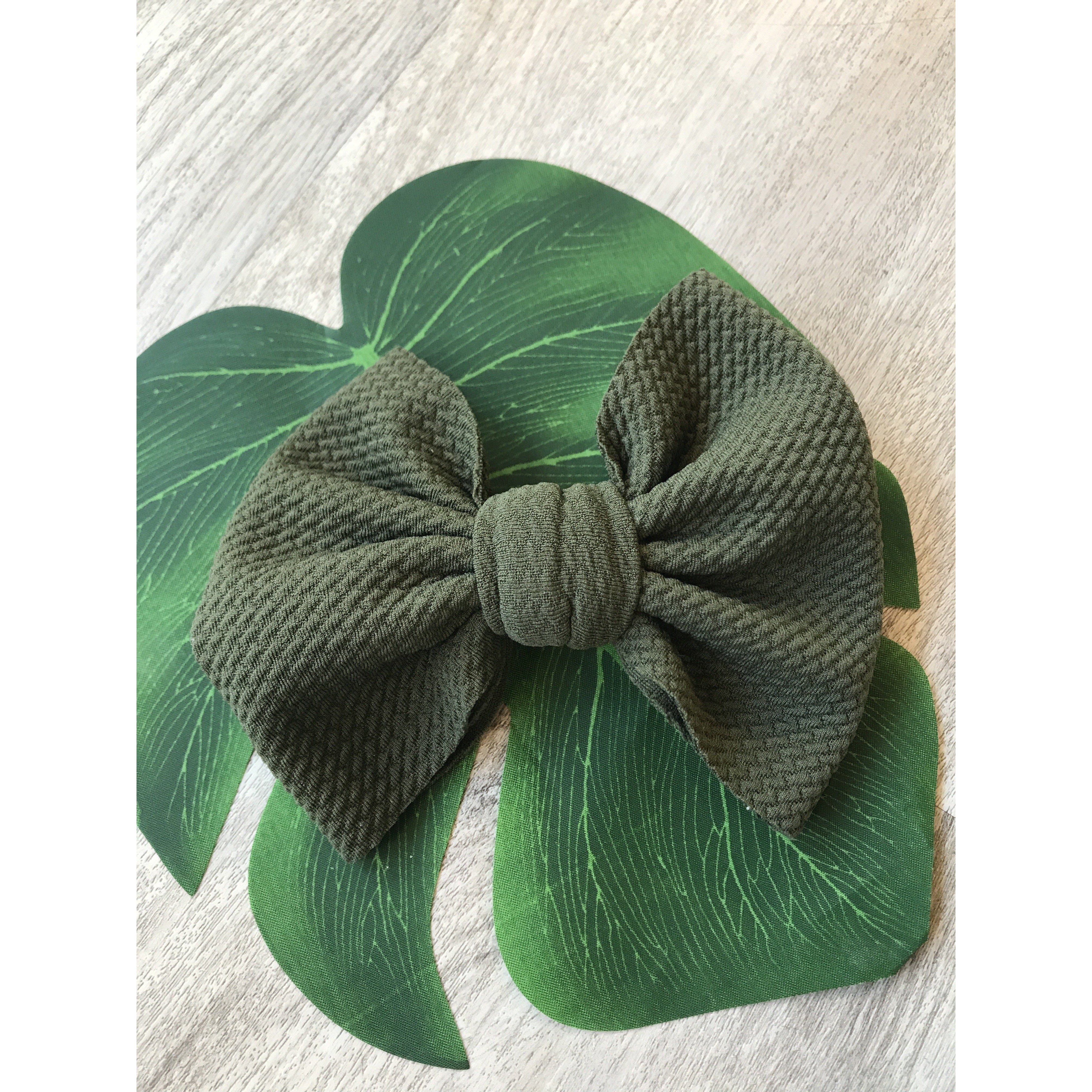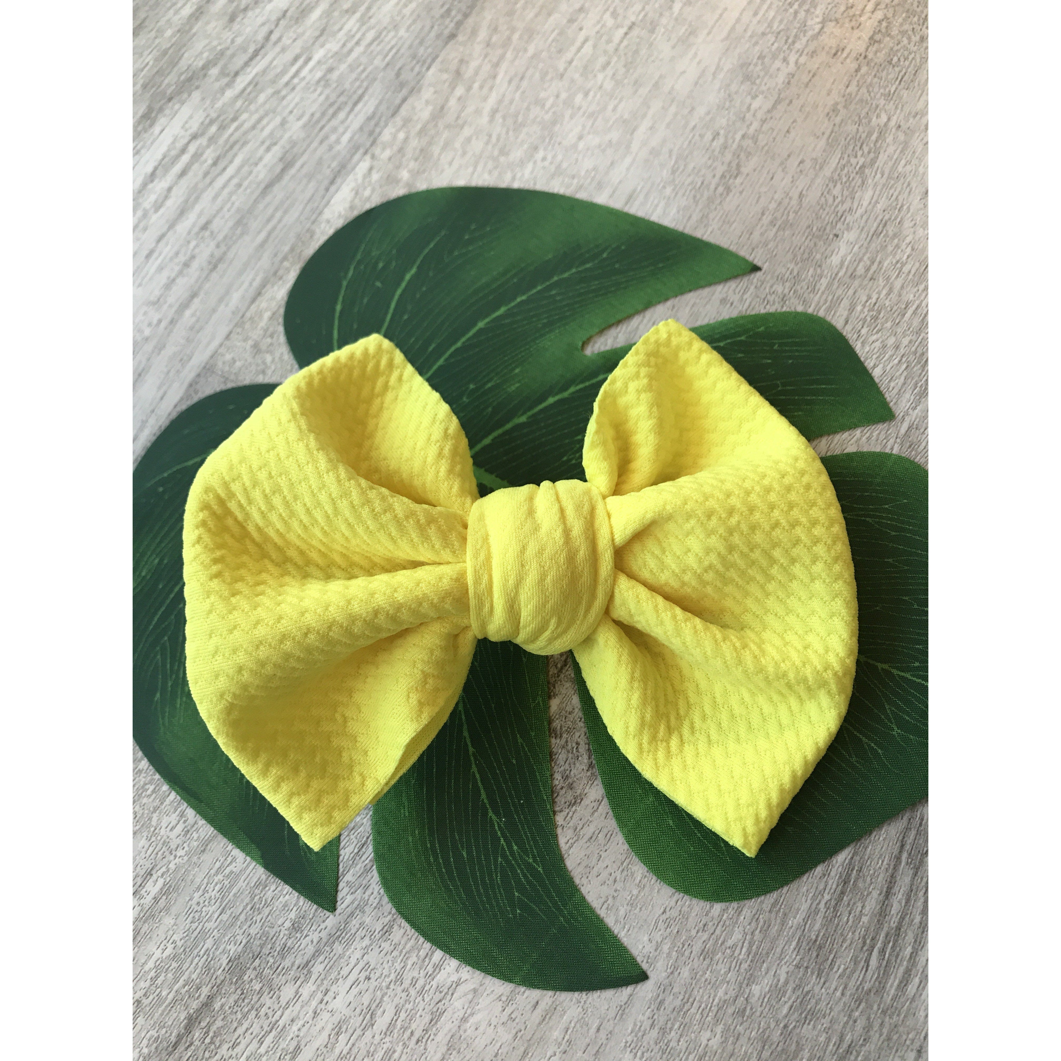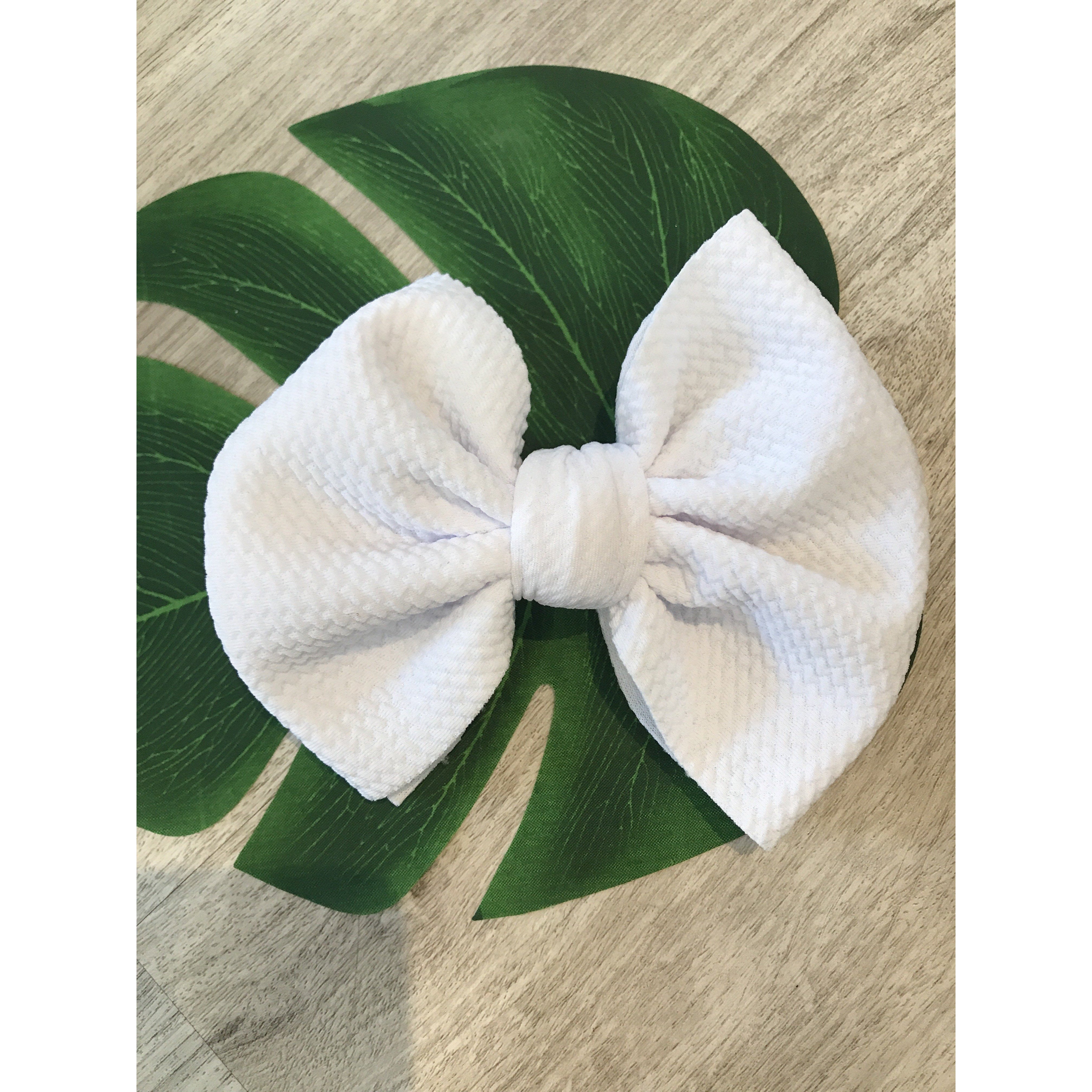 Handmade locally these big bows are attached to metal alligator clip. These bows can easily be clipped into a pony tail, braid, or side of hair.