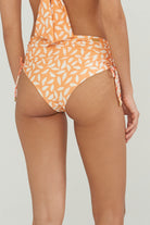The Palmacea Frida Bottom in Carmin is a high-waisted bottom with cheeky coverage and cinched sides.