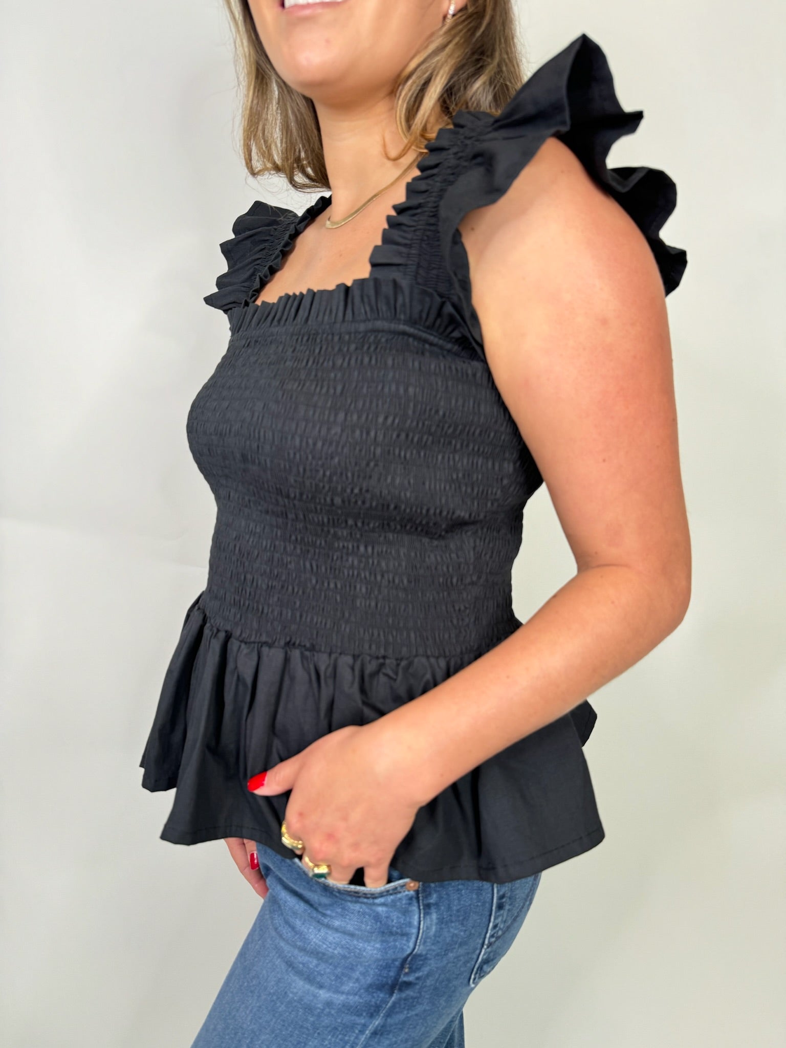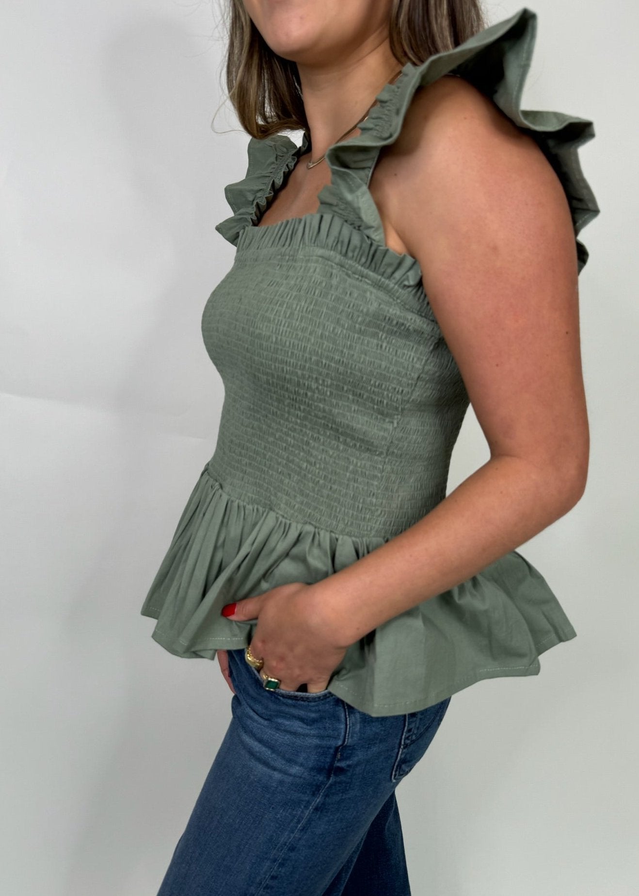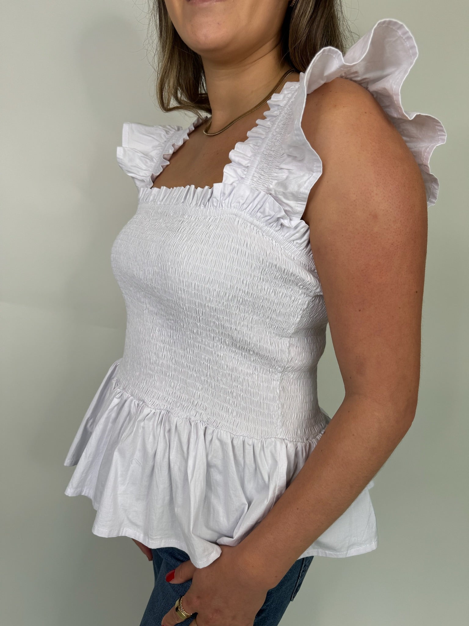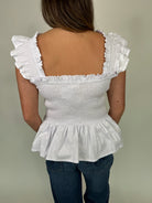 Effortlessly elevate your style with our Phie Poplin Riza Top! Featuring charming ruffle sleeves, a flattering square neck, and a trendy poplin style, this top exudes modern sophistication. Perfect for any occasion, this top will make you look and feel your best.