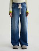 The Adria Cinched Jean delivers vintage-inspired style with a contemporary edge. Featuring a flattering low-rise cut that sits on the hip and a relaxed wide leg that pools at the hem, it's all about effortless cool. Artfully designed with whiskering and subtle fading throughout, for authentic character and movement.