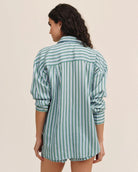 The Bella Dahl Oversized Button Down brings that effortless, borrowed feel with a clean, elevated twist. Designed with a relaxed, drapey fit and soft striped fabric, it is the kind of piece you can throw on and instantly look put together. Wear it tucked, untucked, or layered open, it moves with you and keeps things easy from day to night.