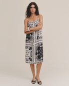 The Bella Dahl Spaghetti Strap Midi Dress is that easy statement piece you throw on and instantly feel put together. Featuring a flowy midi length and a bold, eye catching print, it brings just the right mix of relaxed and elevated. The lightweight feel and delicate straps keep it breezy and comfortable, perfect for warm days, dinners out, or anything in between.