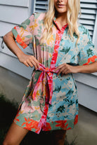 The Elena Mini brings style and comfort together in one irresistible package. Featuring a striking mixed-floral print that's both polished and playful. The button front, contrast details, and bold self-tie waist create a flattering feminine silhouette, while short sleeves keep you cool and comfortable. Ideal for warm days and weekend getaways.