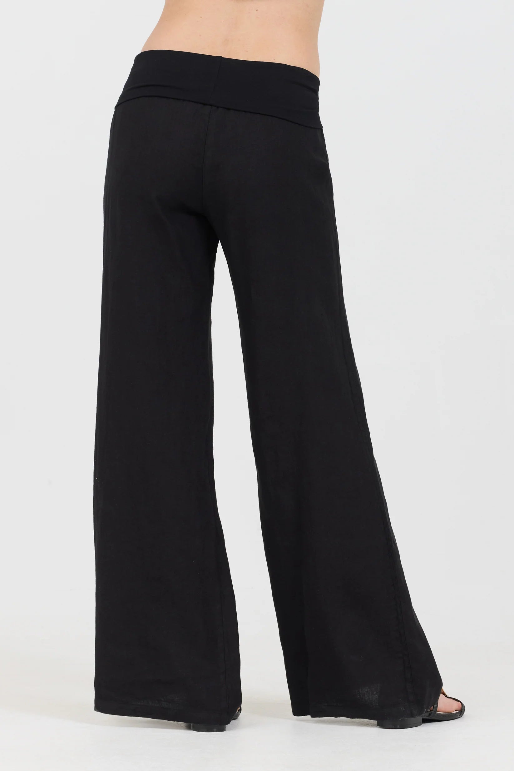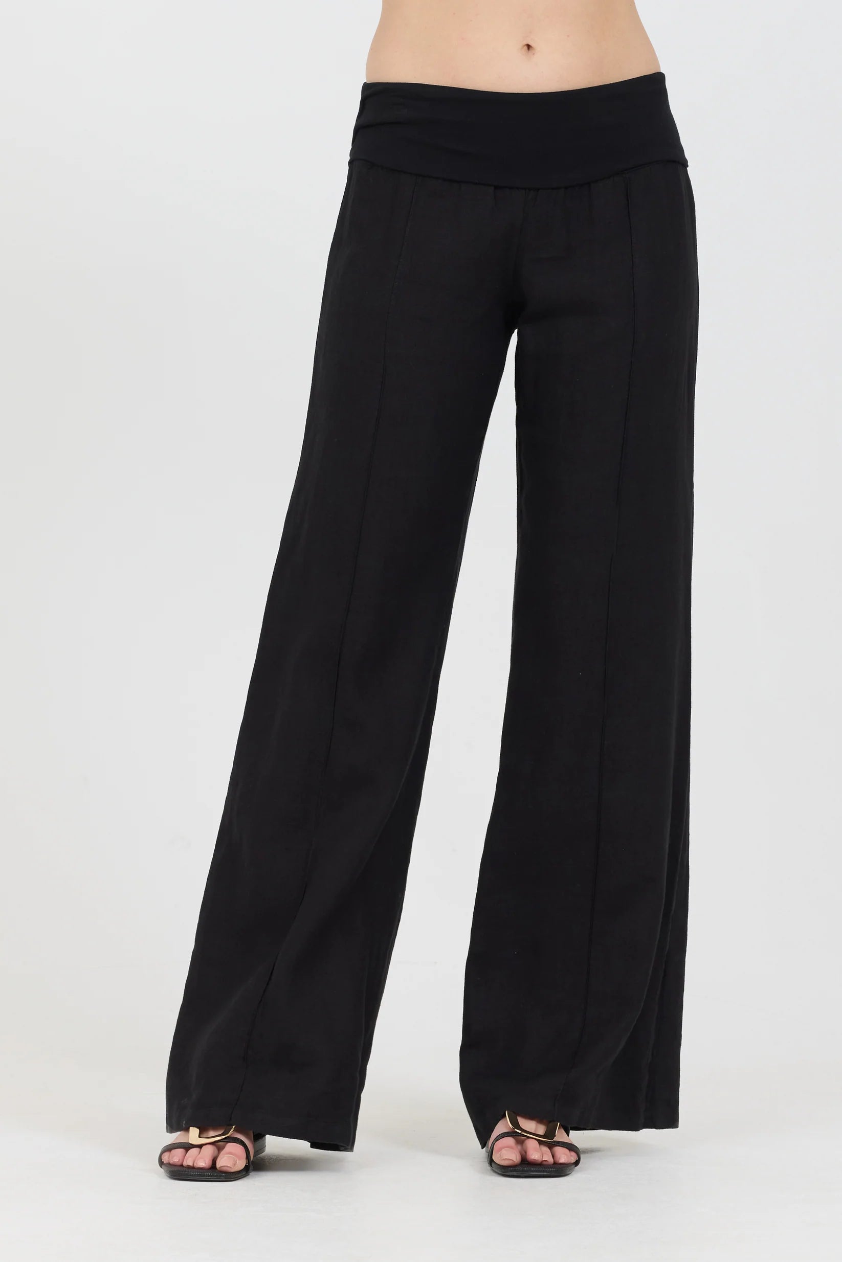 Bring your comfort level to the max in these linen pants. Elegant enough for around town and comfortable enough to wear lounging at home. The customizable fold-over waist adds function and flare.