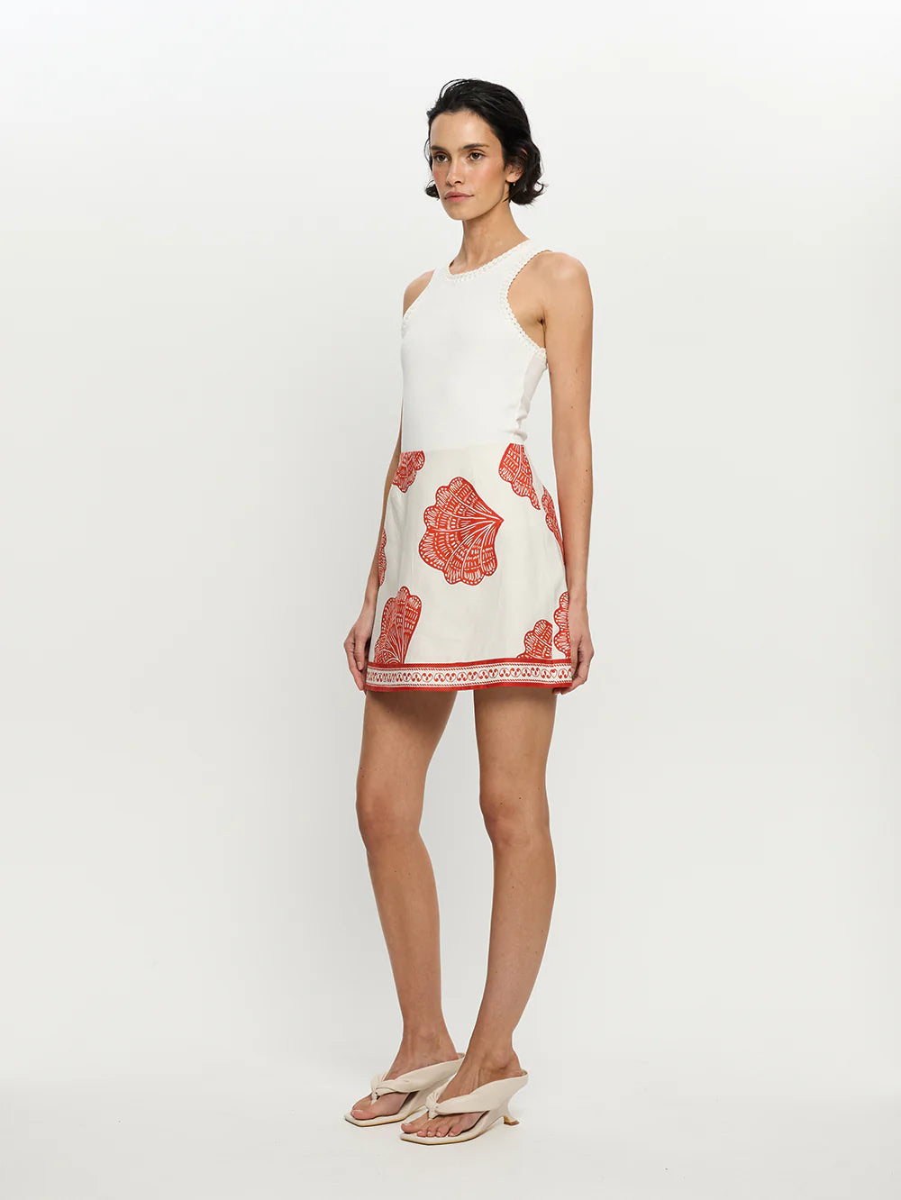 Effortless style in mini form. The Zula Mini Skirt features a flattering A-line silhouette with a refined placement border print at the hem. Designed for versatility and ease, it pairs beautifully with a simple tank and sandals for weekend adventures and sun-soaked days.