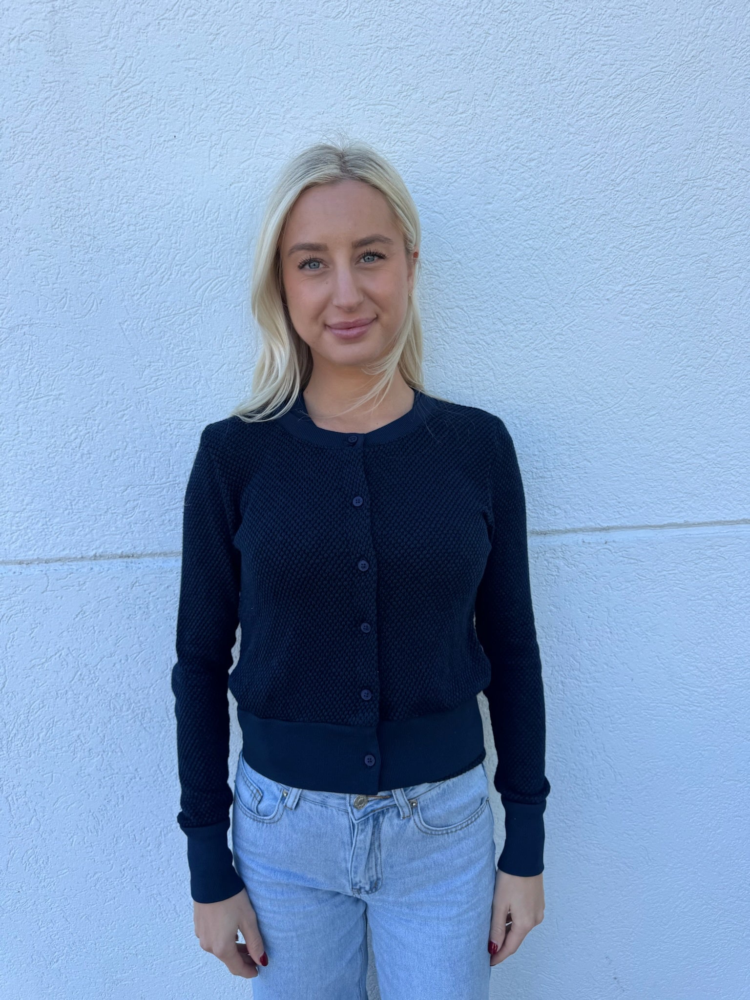 Meet your new closet essential, the LA Made Melrose Cardi. This beauty strikes the perfect balance between polished and playful, featuring vintage-inspired buttons and a classic fit that flatters every frame. Proof that sophistication doesn't have to be boring, this chic layer brings effortless elegance to everything from weekend brunch to night-out vibes.