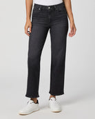 The Paige Mason Ankle Straight Jean is the wardrobe essential you didn't know you needed. Featuring a flattering mid-rise and straight leg that lands right at the ankle, these jeans are pure versatility. Made from Transcend Vintage denim in deep ink black with whispered fading and whiskers, they bring authentic character and comfort to every outfit.