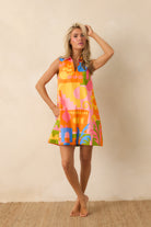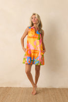 Fun, vibrant, and made for sunny days, the Tybee Mini Dress is all about effortless statement style. Designed with a relaxed, easy fit and a playful collared neckline, it features a bold, colorful print that instantly stands out. Lightweight and breezy, it is perfect for beach strolls, brunch plans, or wherever the day takes you when you want something simple that still feels special.