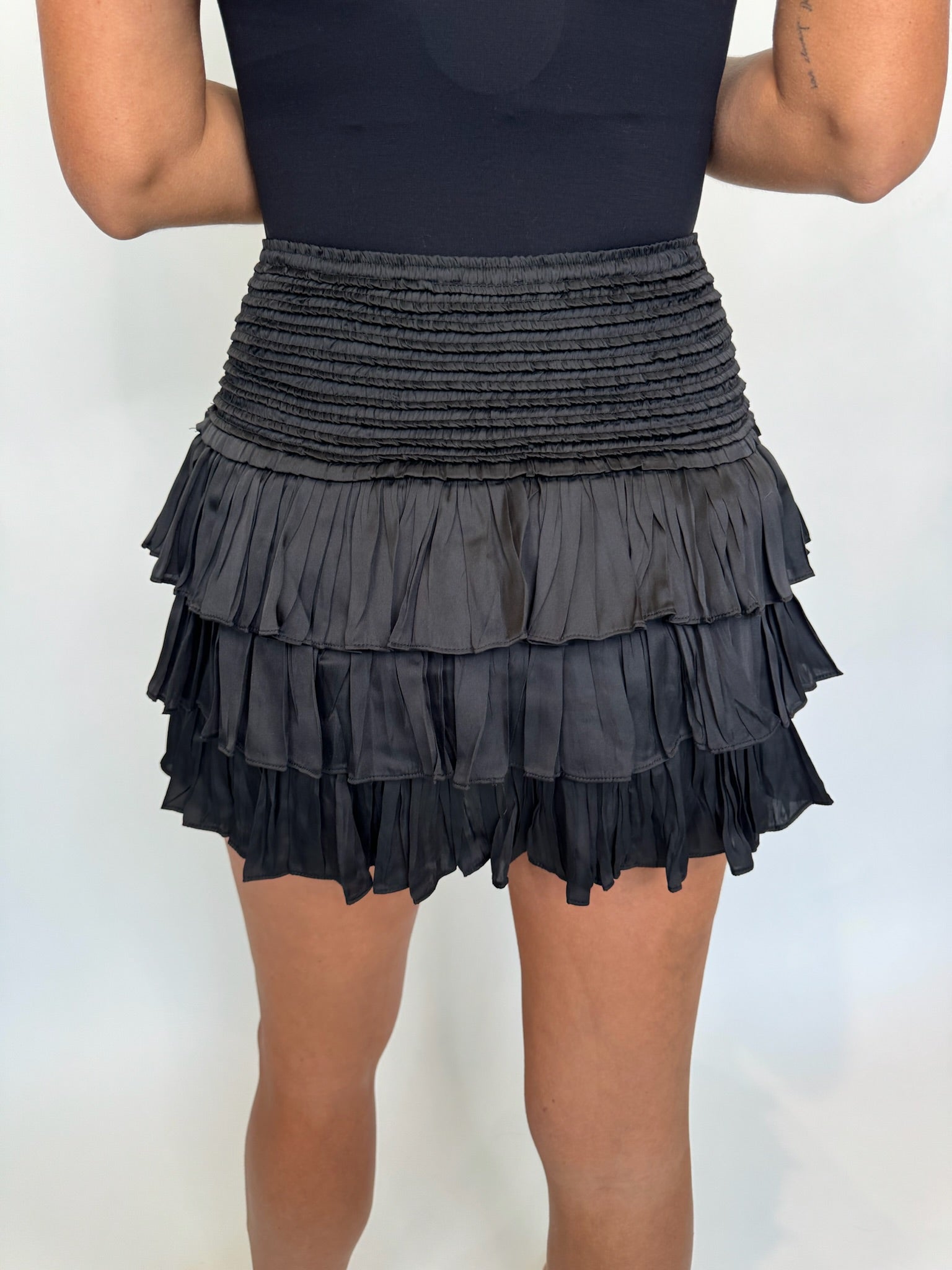 Get ready to flounce around in style with the Reset Emily Skort! Made from silky fabric, this skort features three tiers of ruffles and a smocked waist for a comfortable fit. Plus, the built-in lined shorts give you added coverage.