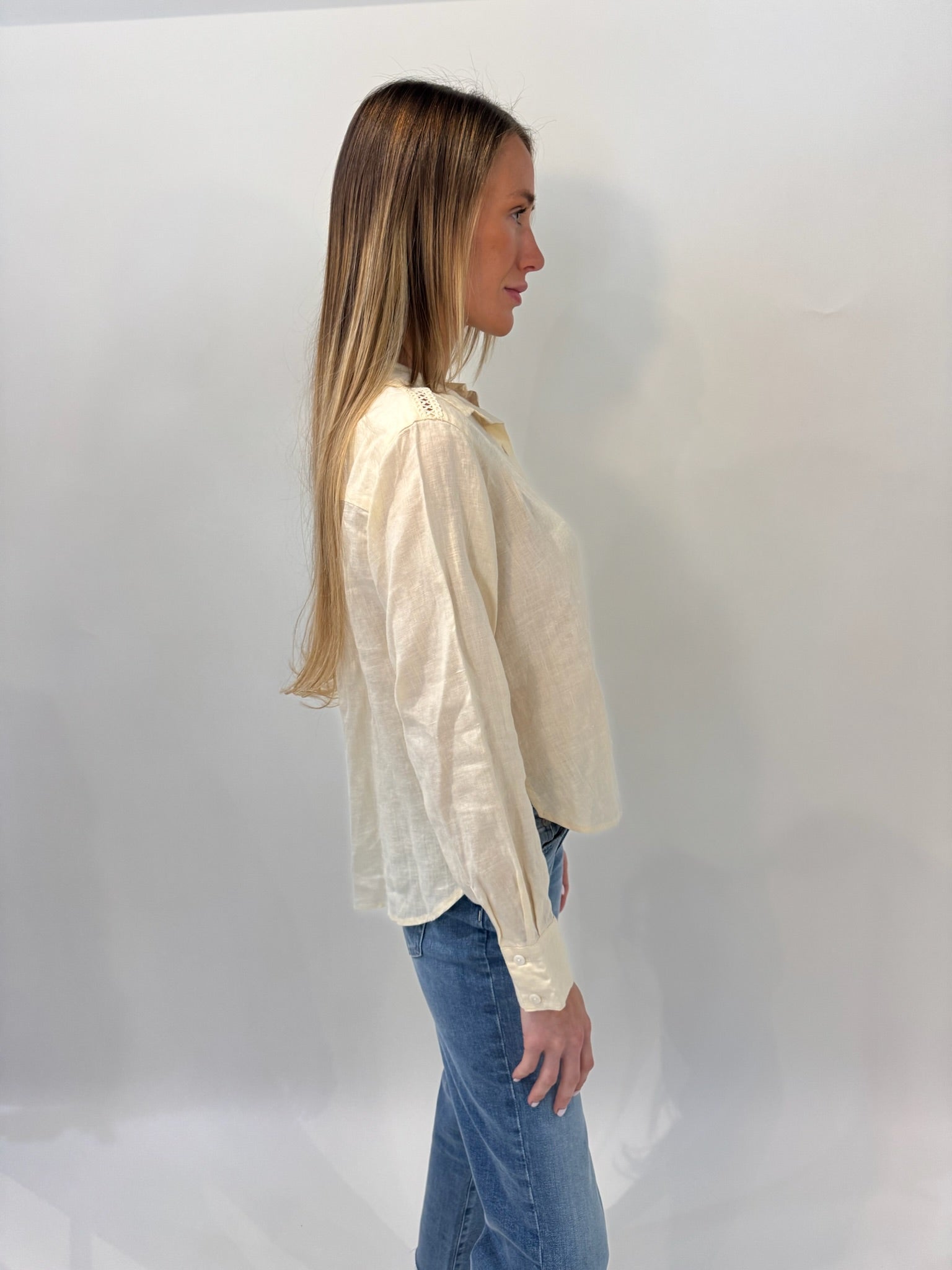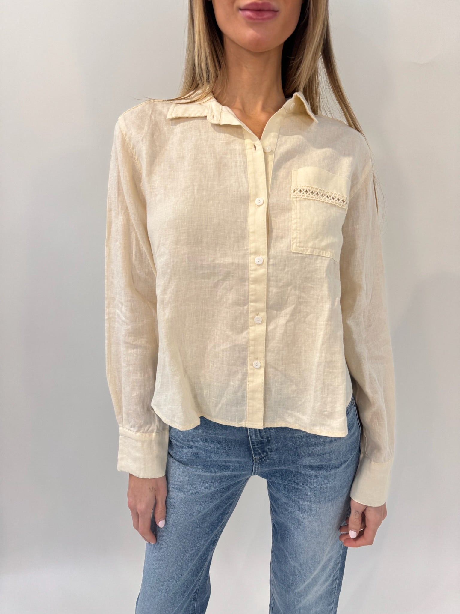 A fresh take on a classic, the Splendid Stella Linen Trim Button Down is an easy wardrobe staple. Made from breezy linen, it keeps things light and comfortable, while the slightly cropped fit adds a modern feel. Finished with delicate eyelet trim on the sleeves and pockets, it brings just the right amount of detail to an everyday look.