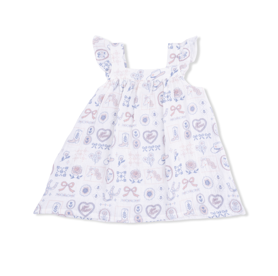 Dress her up in Western charm! This delightful Angel Dear Country Western Heirlooms Sundress & Bloomer Set features a sweet country print that's perfect for warm days and fun adventures. It's lightweight, breathable, and oh-so-adorable. The classic heirloom style brings timeless appeal to any little one's wardrobe.