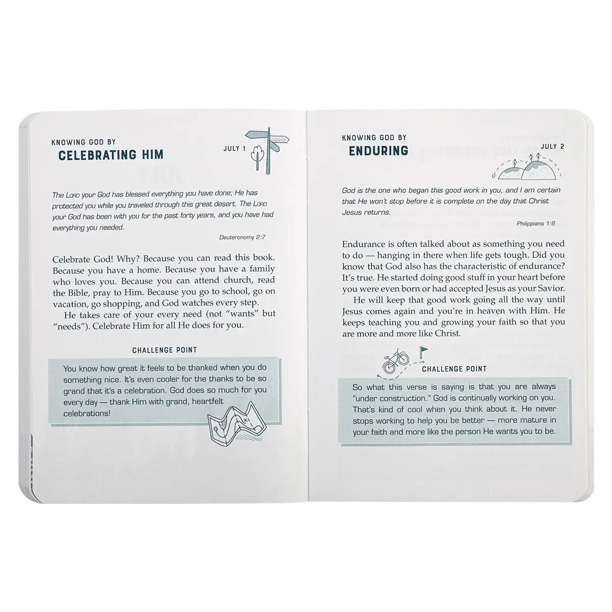 Designed for active boys on the go, Christian Art Gift 365 Days To Knowing God For Guys offers short, engaging devotions packed with practical life lessons. Perfect for those who love skateboarding, biking, or any adventure, these daily reflections fit right into a busy schedule while inspiring growth in faith.