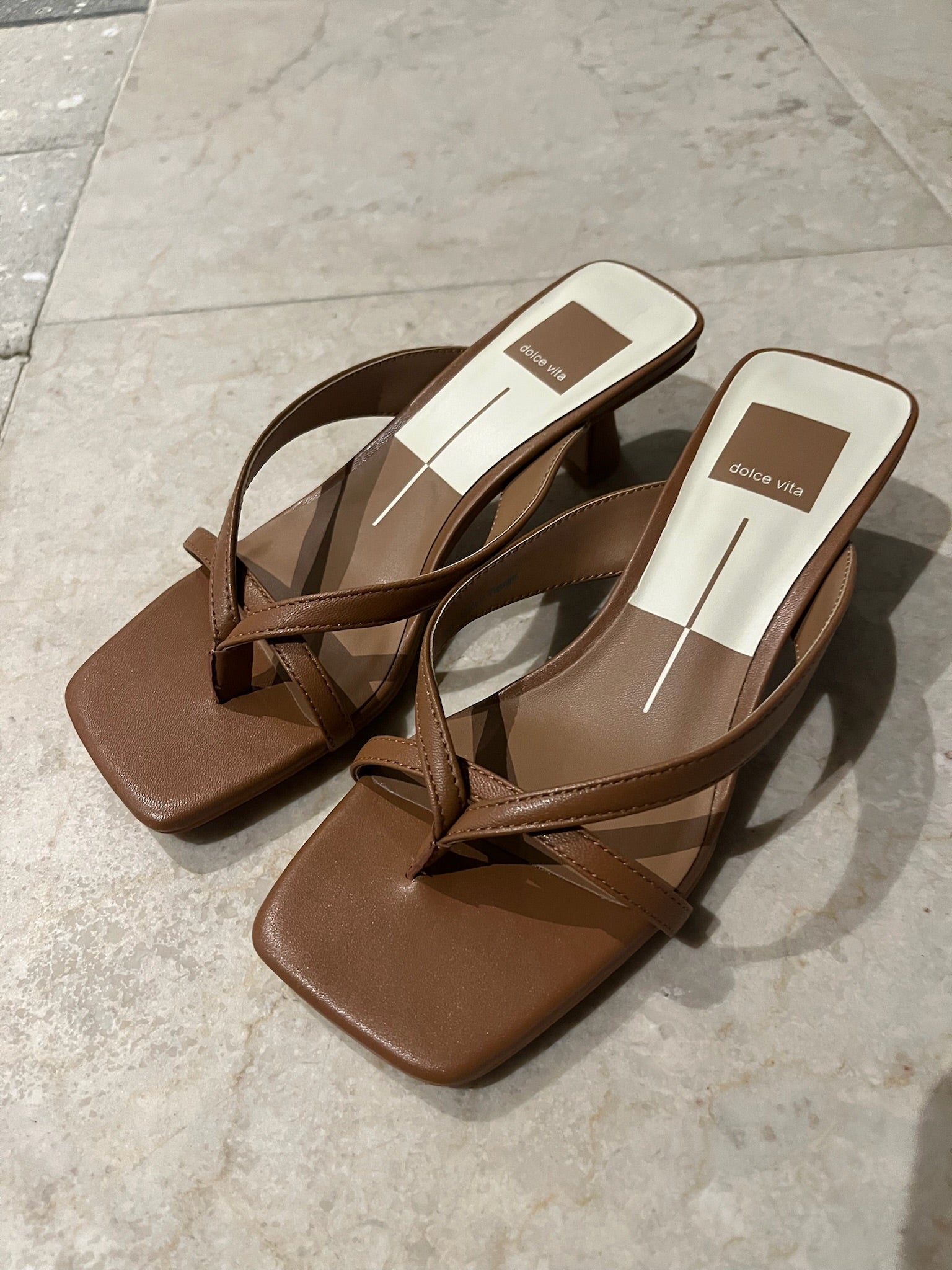 The Dolce Vita Brevel Heel is the perfect sandal for a modern and stylish look. Its unique horizontal strap and y-shaped design, combined with a low, architectural heel, make it the ideal choice for versatile day-to-night dressing all season long.
