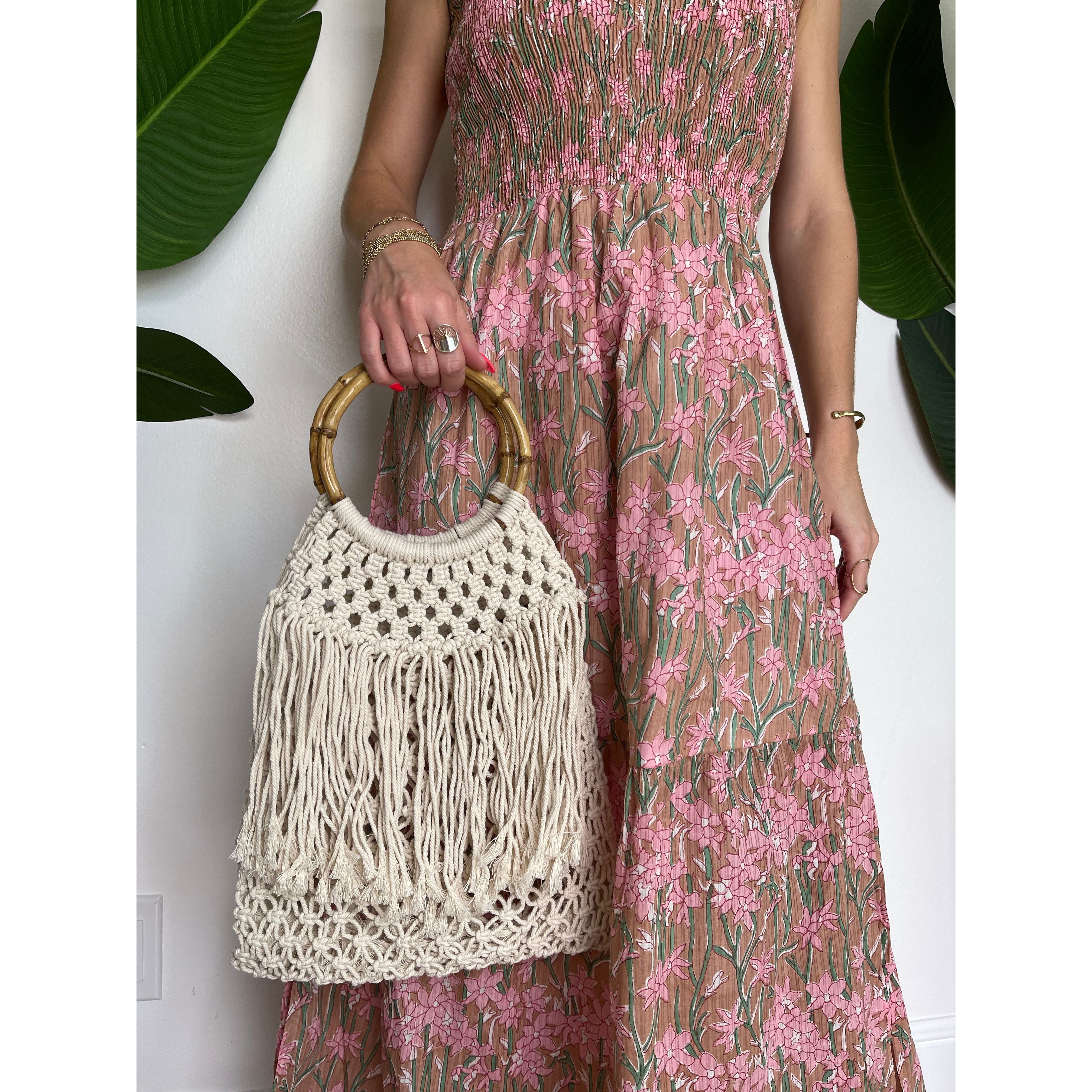 Beautiful and sweet with a boho edge. The GSA Bamboo Handle Fringe Bag is the perfect little accessory for a day around town.
