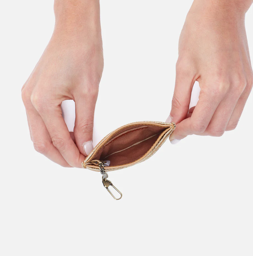 A leather card case. Max has a minimalist design, making it the perfect fit for smaller bags.