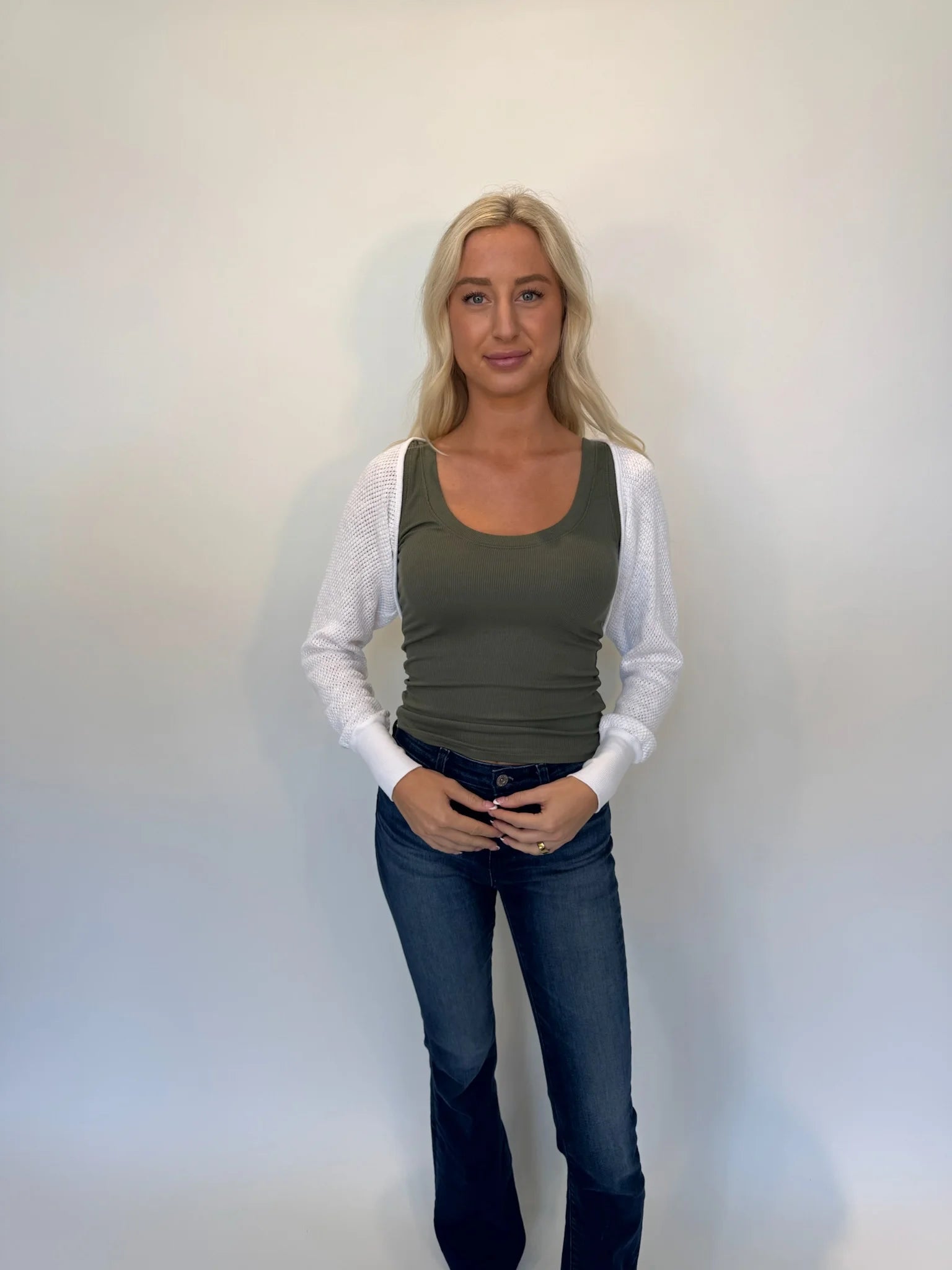 Meet your new layering essential. The LA Made Sia Shrug combines a delicate mesh sweater knit with a cropped silhouette that works over dresses, tanks or tees. Lightweight and versatile, it's the perfect piece to add dimension and warmth to any outfit, season after season.
