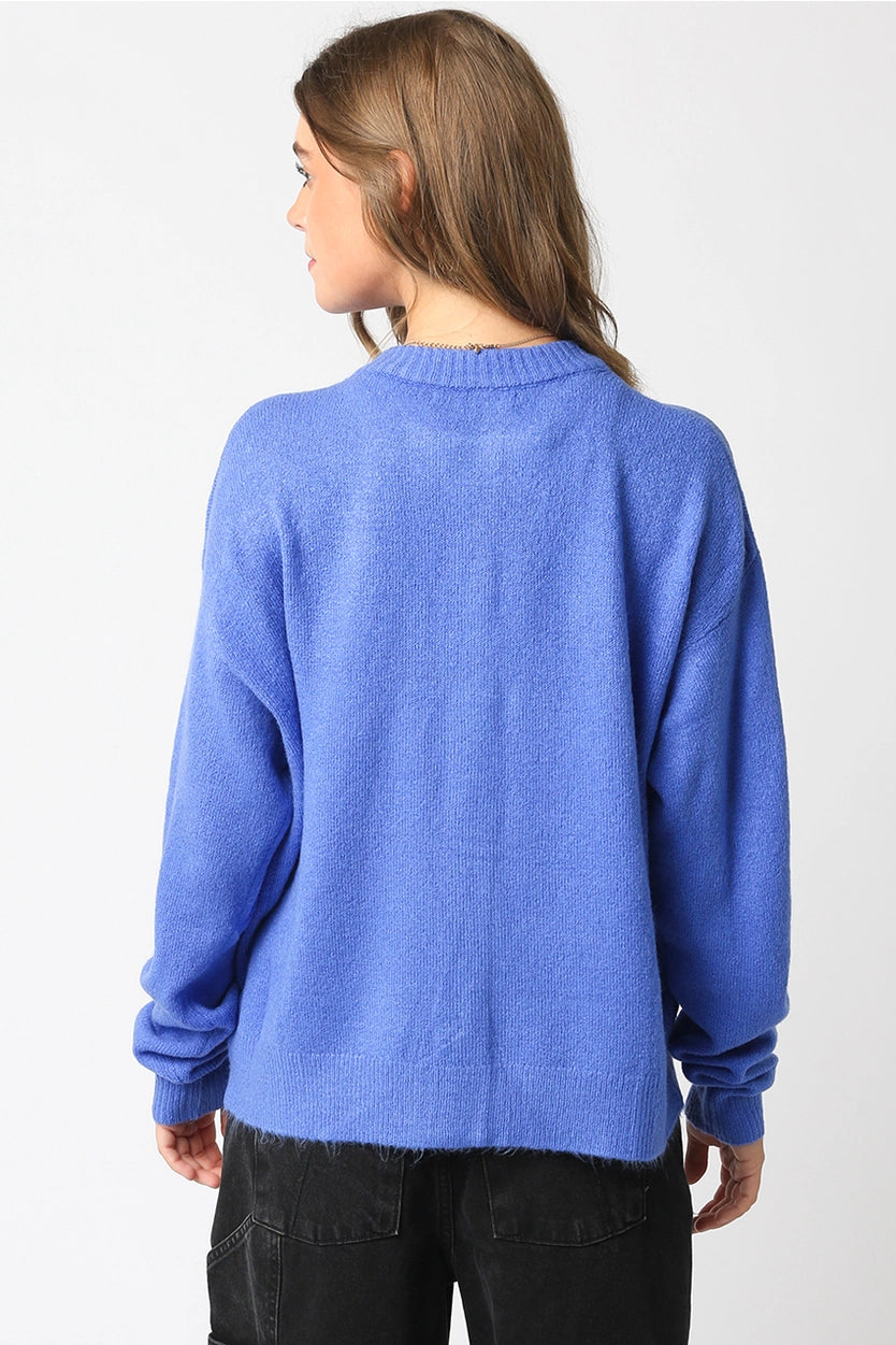 The Olivaceous Gillian Sweater is a cozy long-sleeve knit with a button-down front, perfect for adding a soft and stylish layer to any outfit.