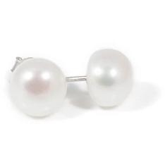 Sterling Silver 8mm High Luster Freshwater Pearl Button Pearl Earrings.