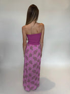 Skemo Batik Maxi Long Dress showcases a vibrant floral print with a strapless design and smocked top for a flattering fit. Contrast banding at the waist defines your silhouette while adding visual interest. An elegant choice for summer events or resort wear.